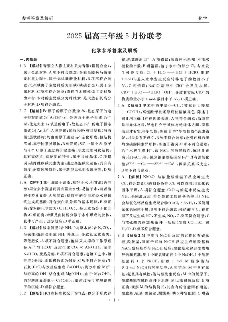 衡水金卷2025届高三年级5月联考化学试题及答案