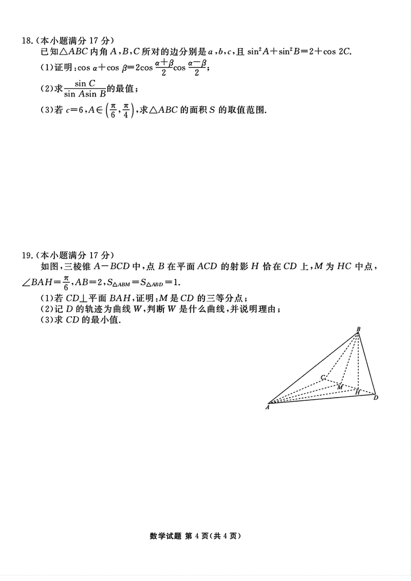 衡水金卷2025届高三年级5月联考数学试题及答案