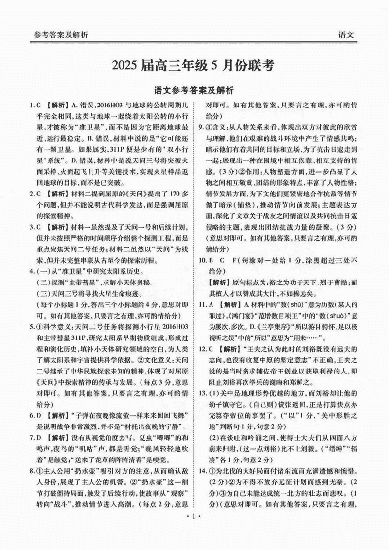 衡水金卷2025届高三年级5月联考语文试题及答案