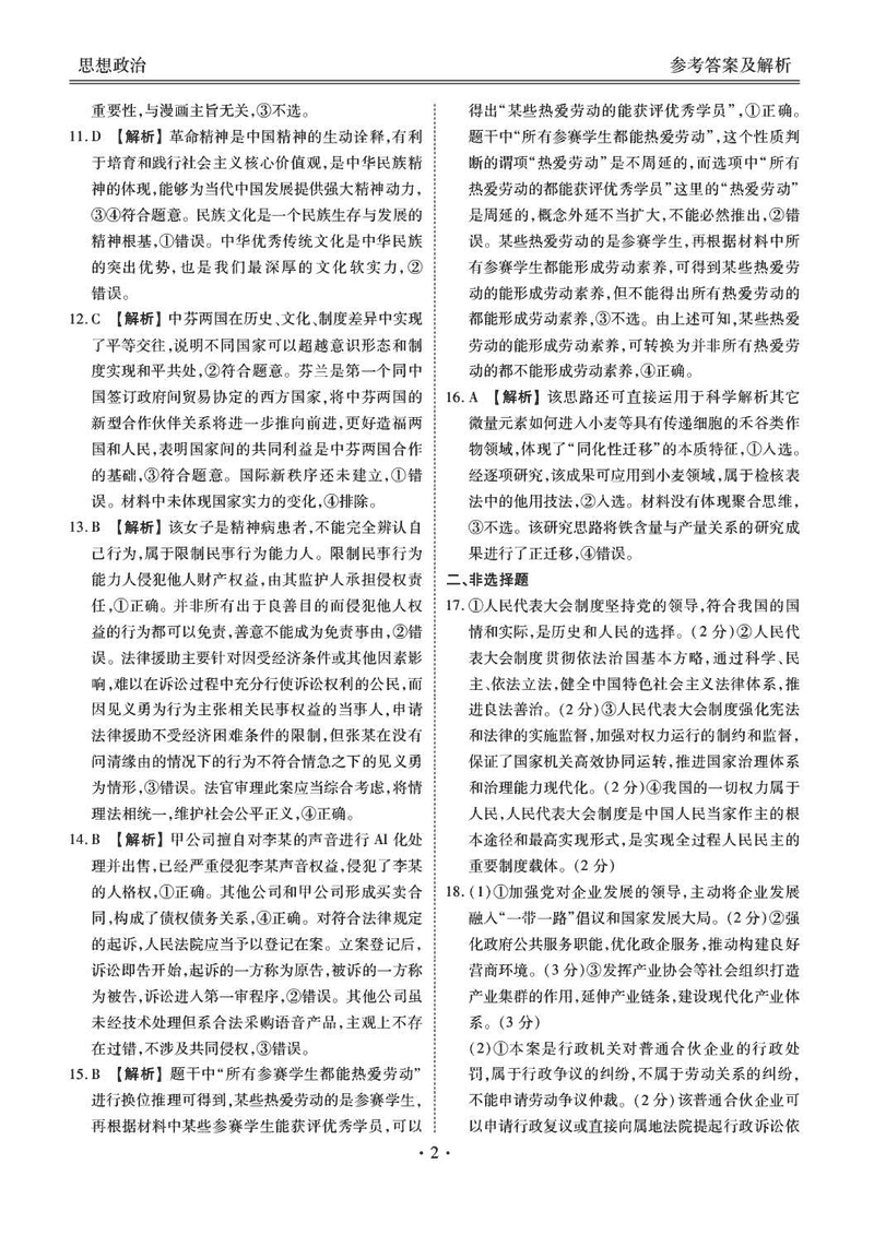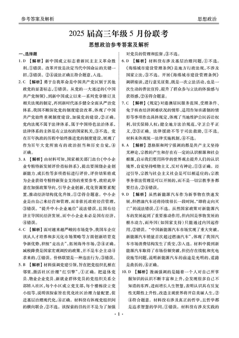 衡水金卷2025届高三年级5月联考政治试题及答案