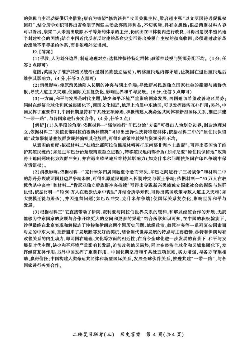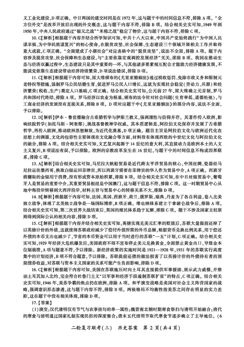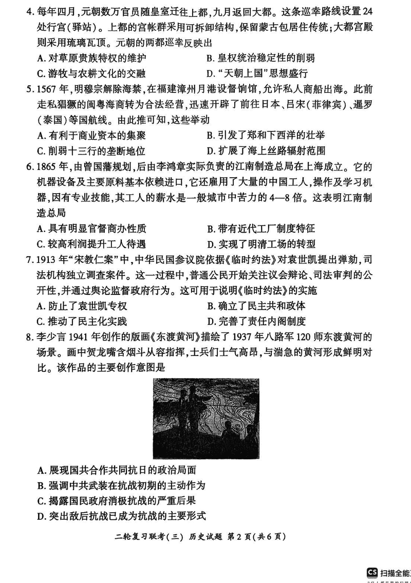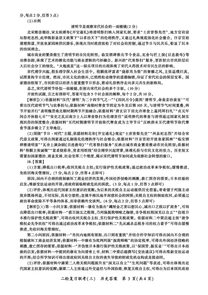 2025届百师联盟高三二轮复习联考(三)历史试题及答案