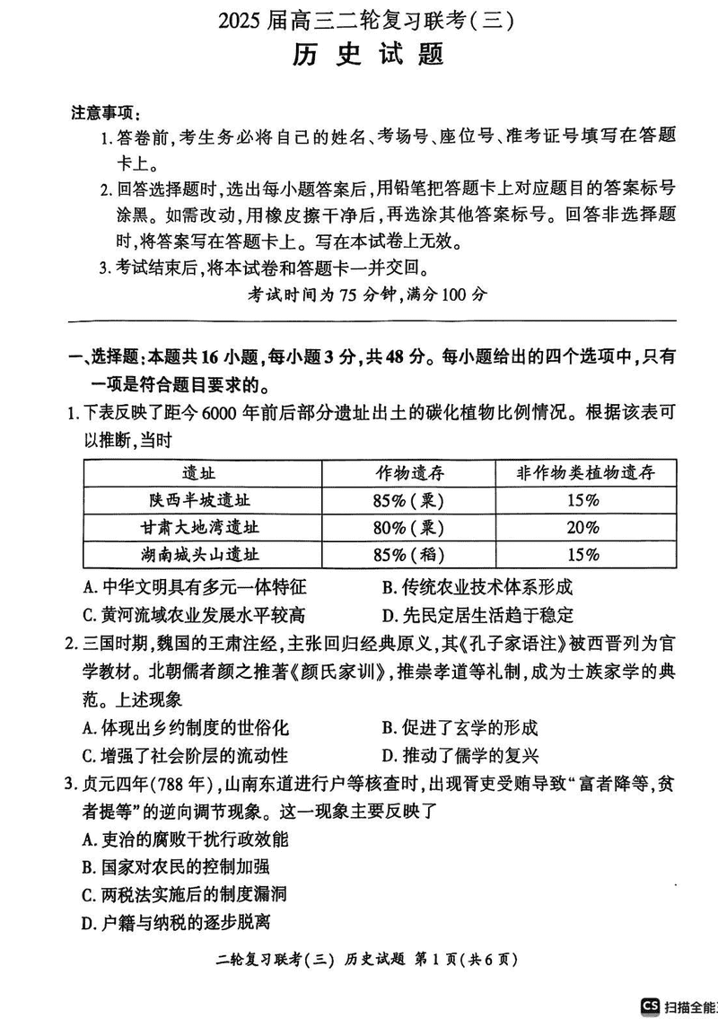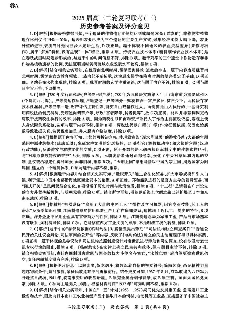 2025届百师联盟高三下学期二轮复习联考(三)历史考试已于近日开考,为方便考生考后及时查看考试情况,查漏补缺、弥补不足,本文整理了试题答案解析相关信息!