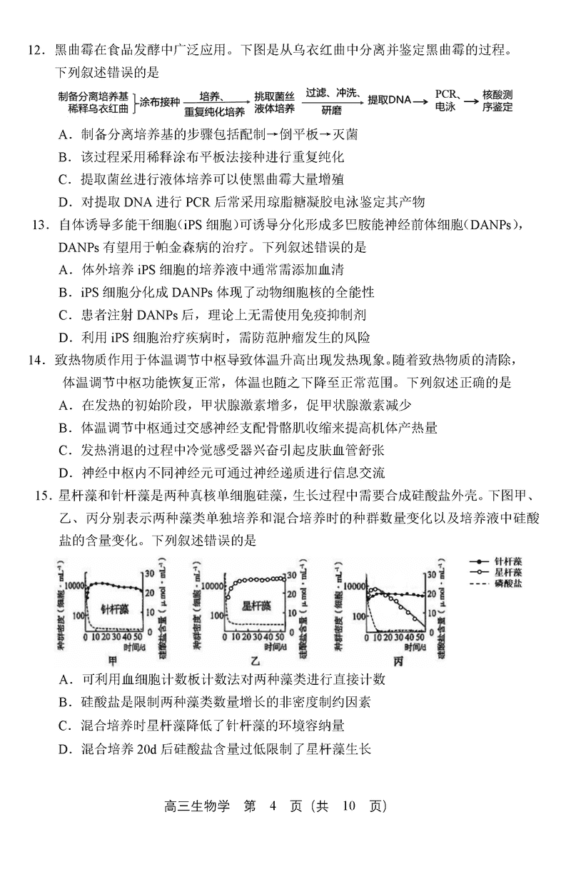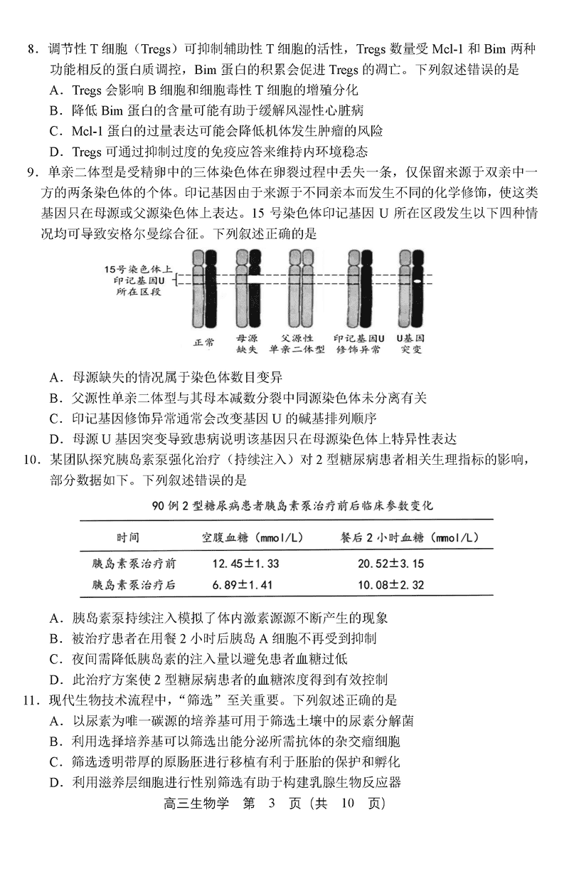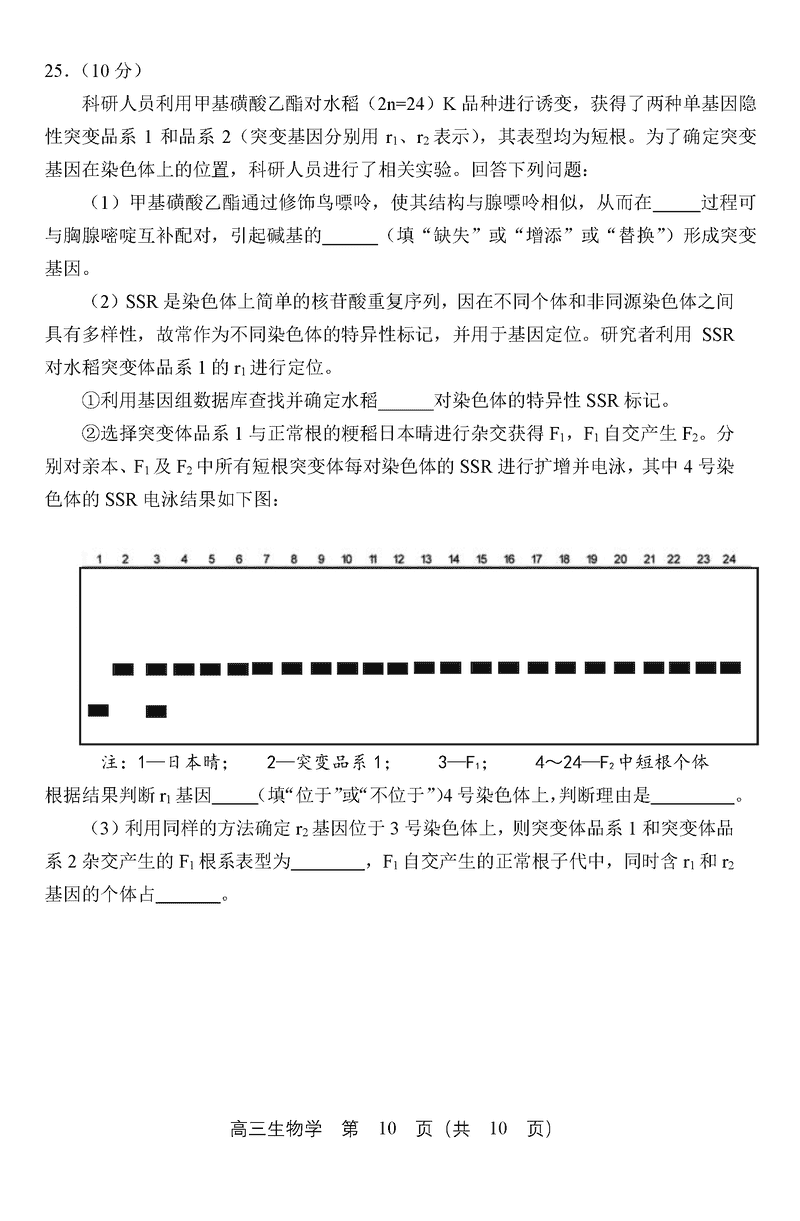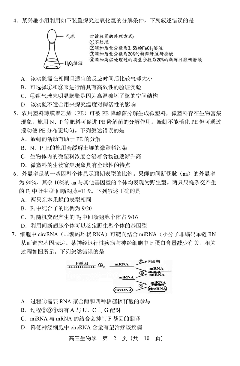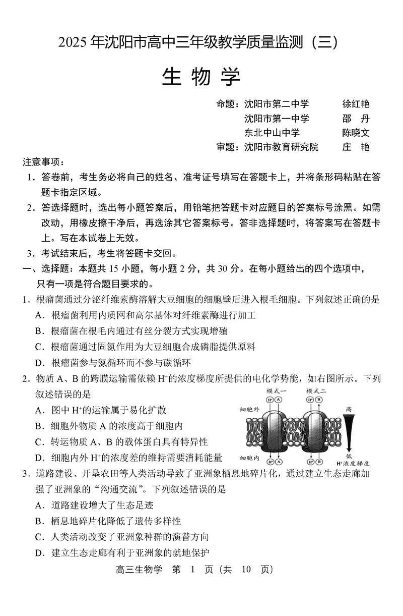 沈阳市2025届高三下教学质量监测(三)生物试题及答案