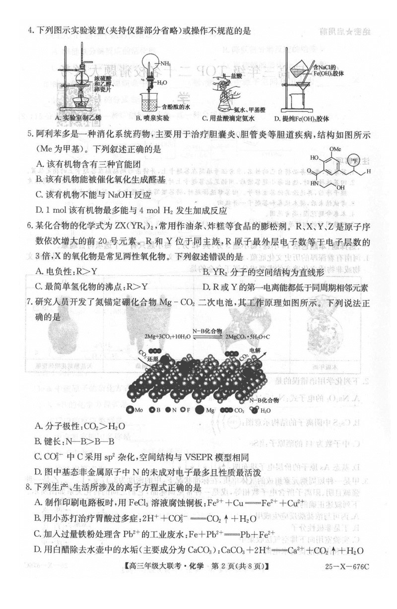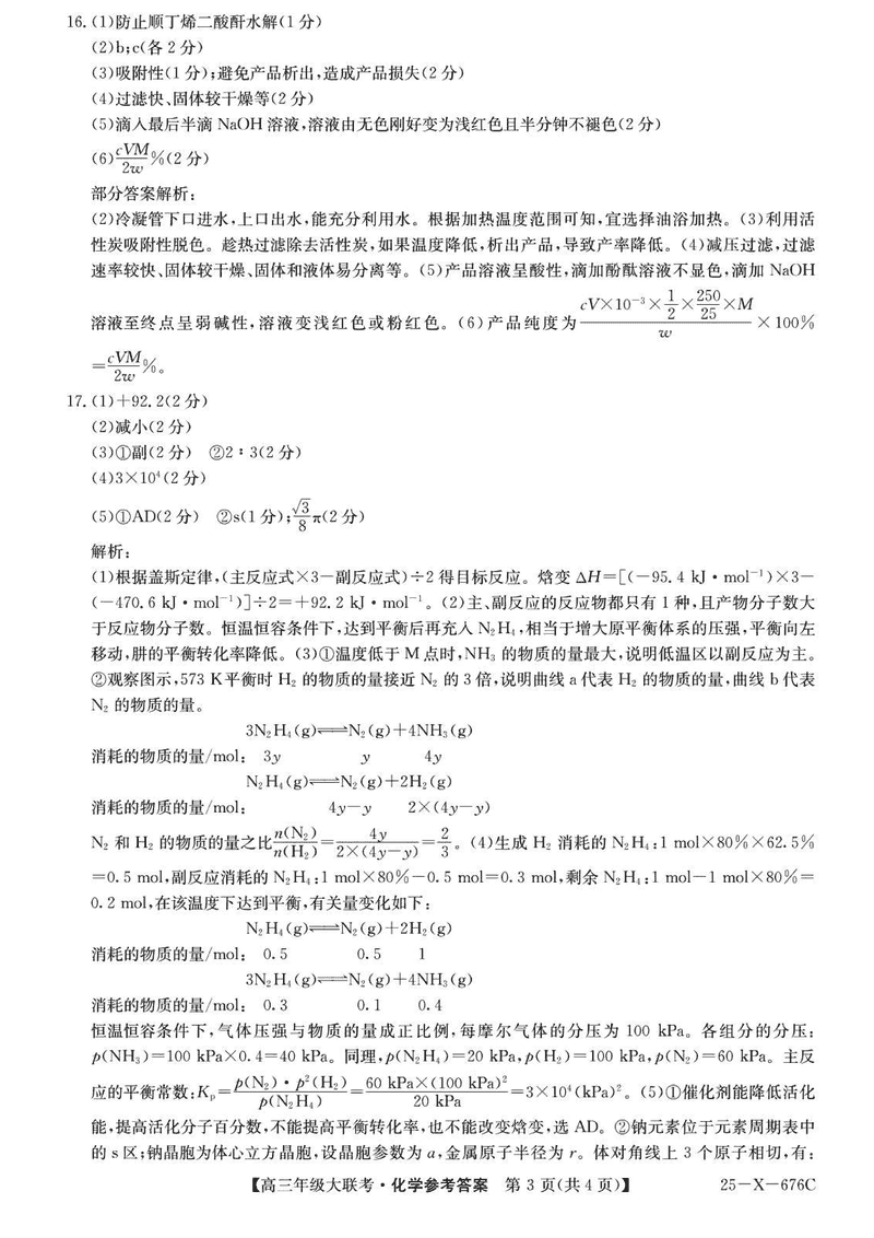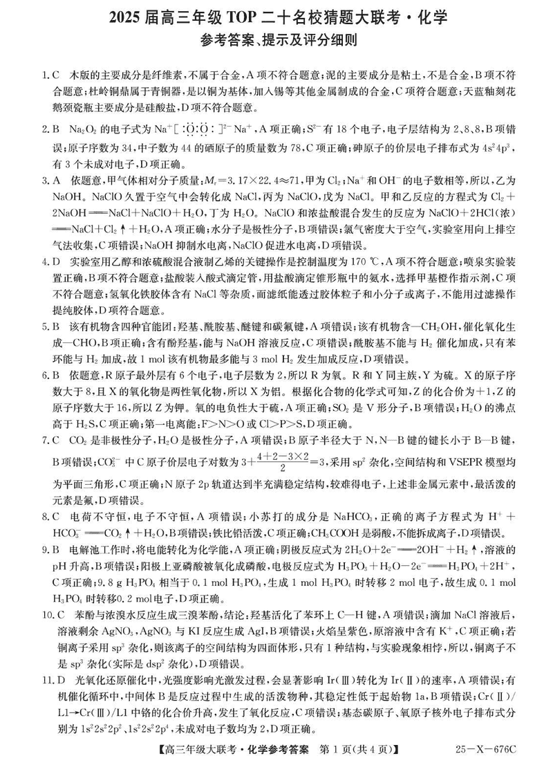 河南TOP二十名校2025届高三猜题大联考化学试题及答案