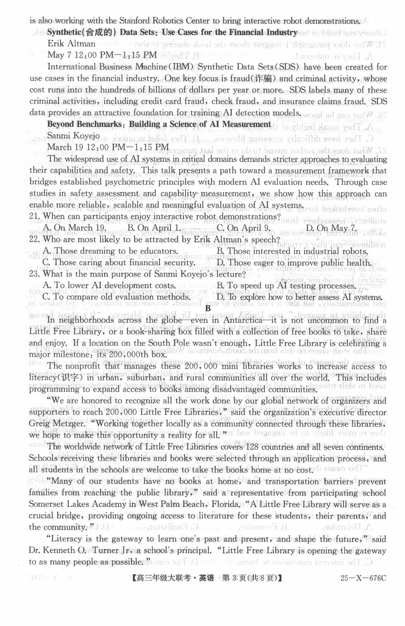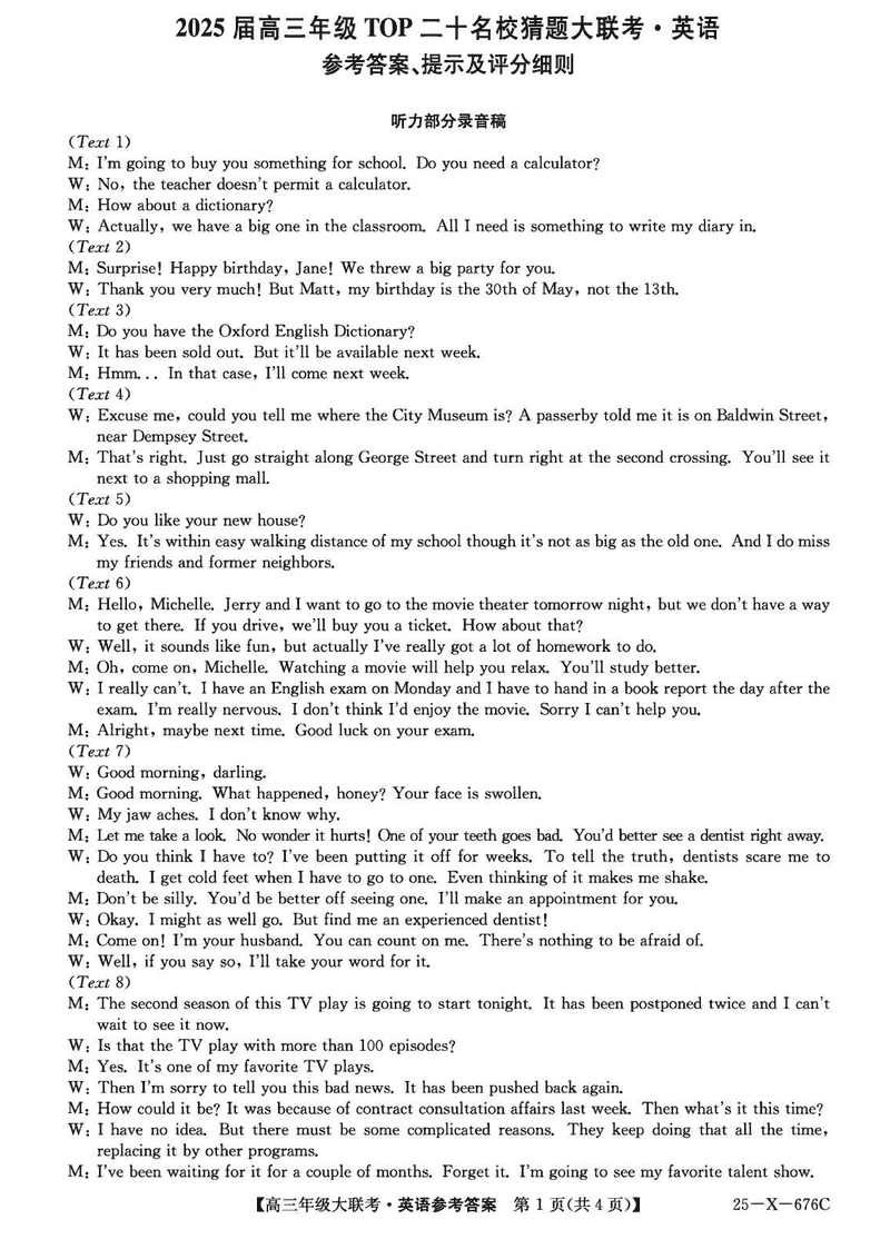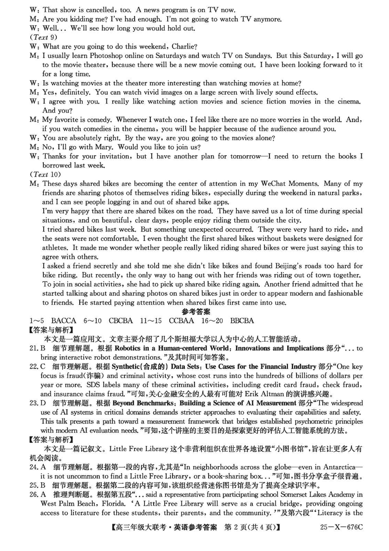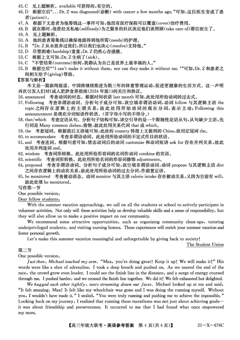 河南TOP二十名校2025届高三猜题大联考英语试题及答案