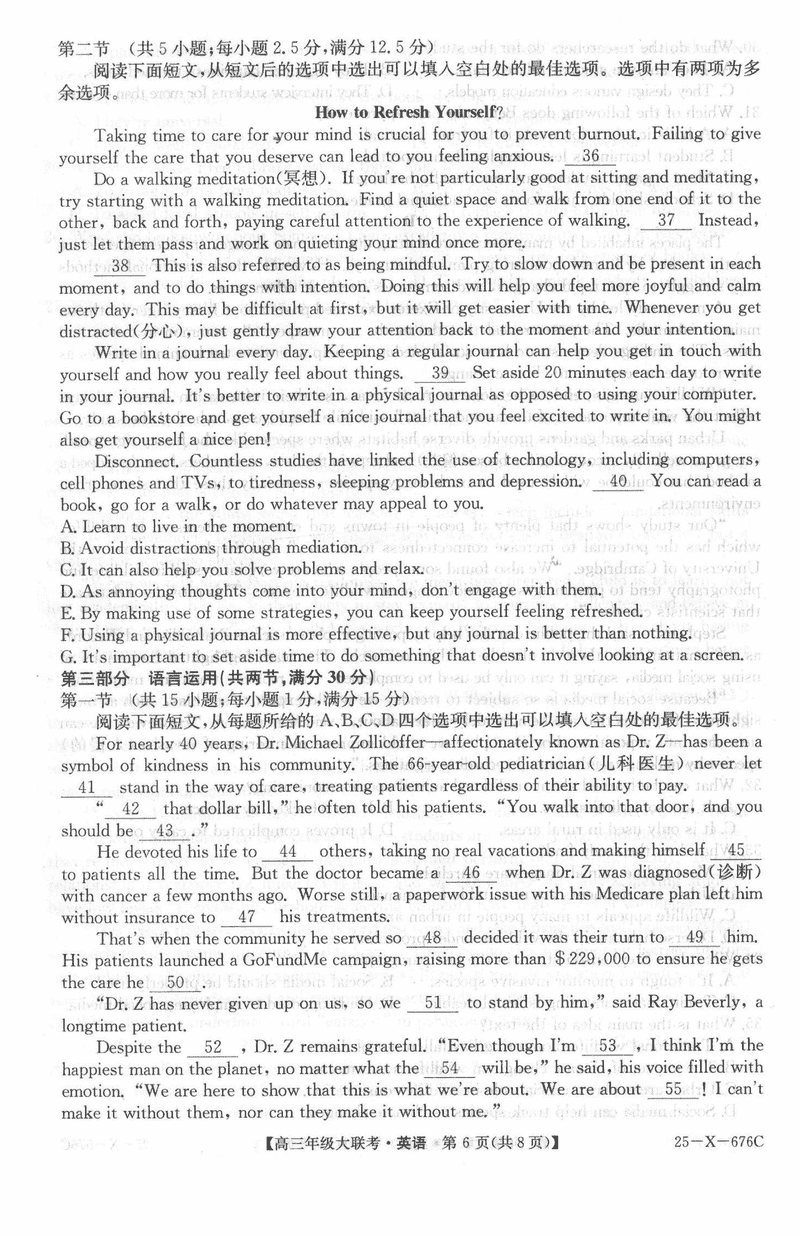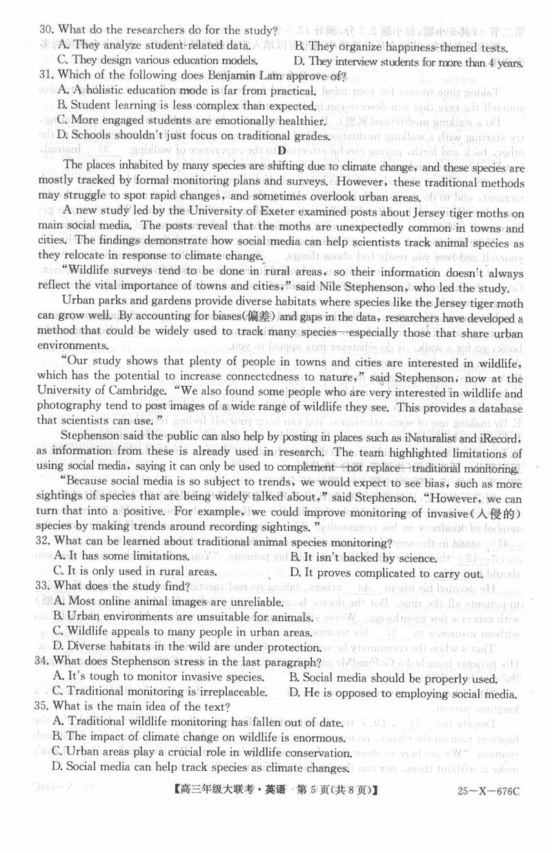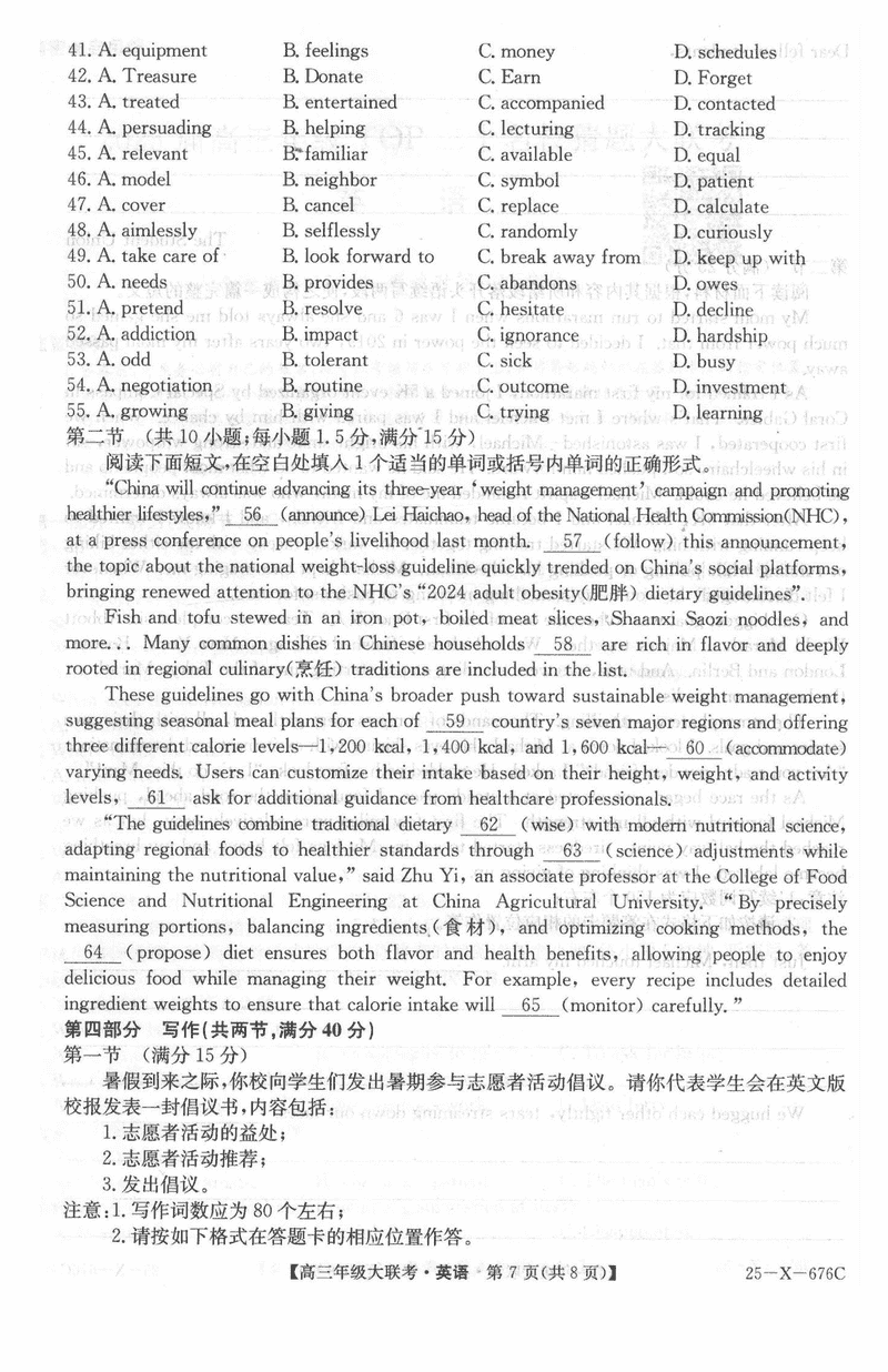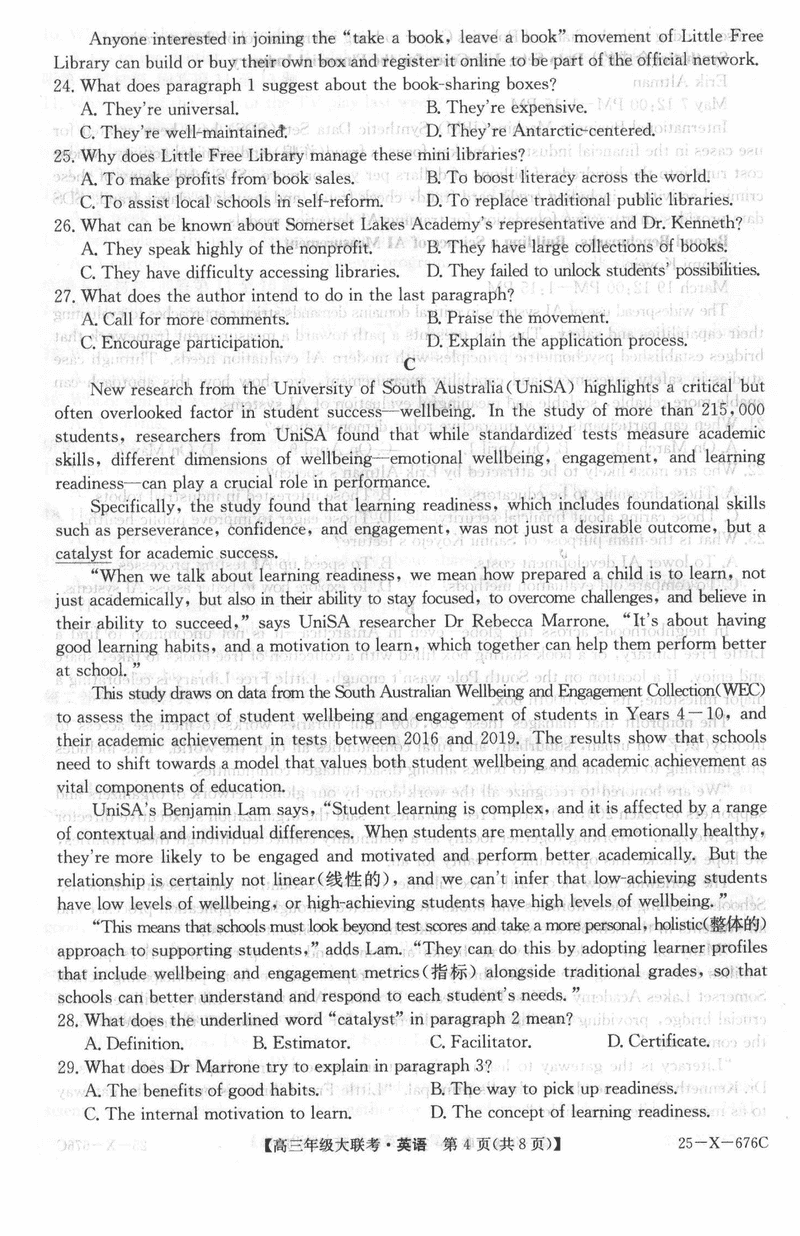河南TOP二十名校2025届高三猜题大联考英语试题及答案