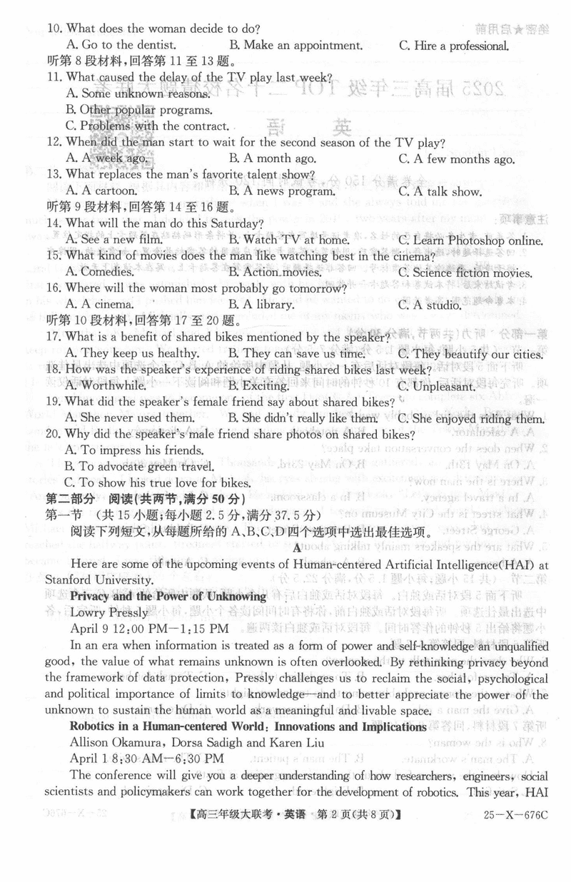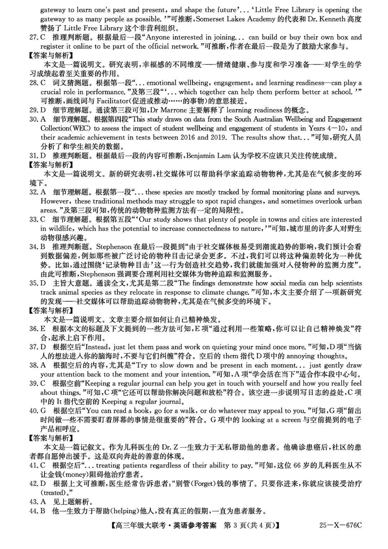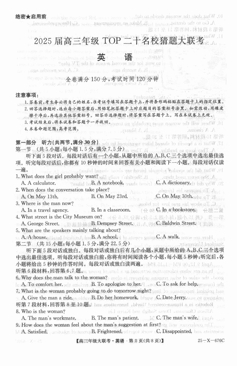 河南TOP二十名校2025届高三猜题大联考英语考试已于近日开考,为方便考生考后及时查看考试情况,查漏补缺、弥补不足,本文整理了试题答案解析相关信息!