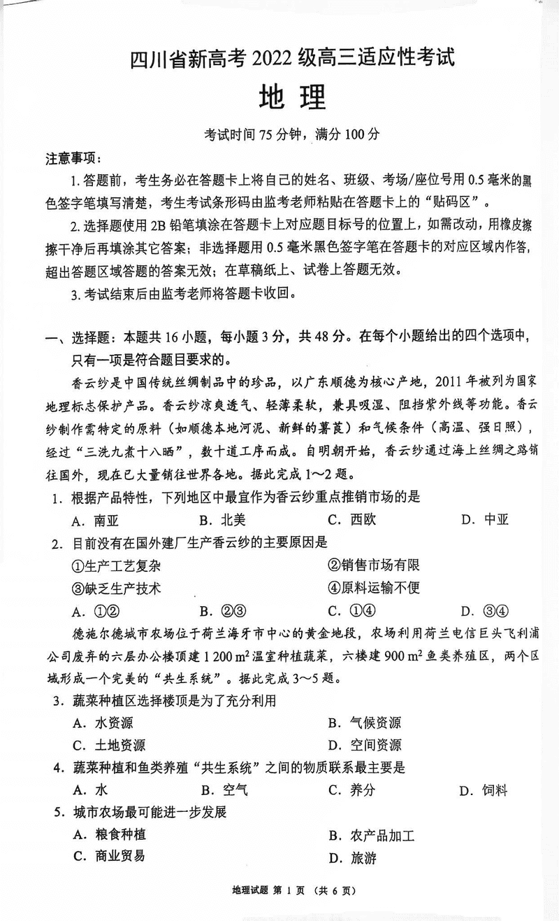 四川蓉城名校联盟新高考2025届高三5月适应性考地理考试已于近日开考,为方便考生考后及时查看考试情况,查漏补缺、弥补不足,本文整理了试题答案解析相关信息!
