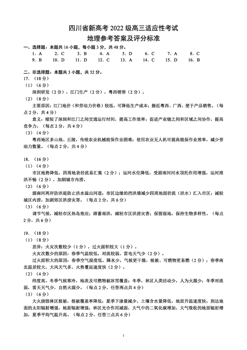四川蓉城名校联盟新高考2025届高三5月适应性考地理试题及答案