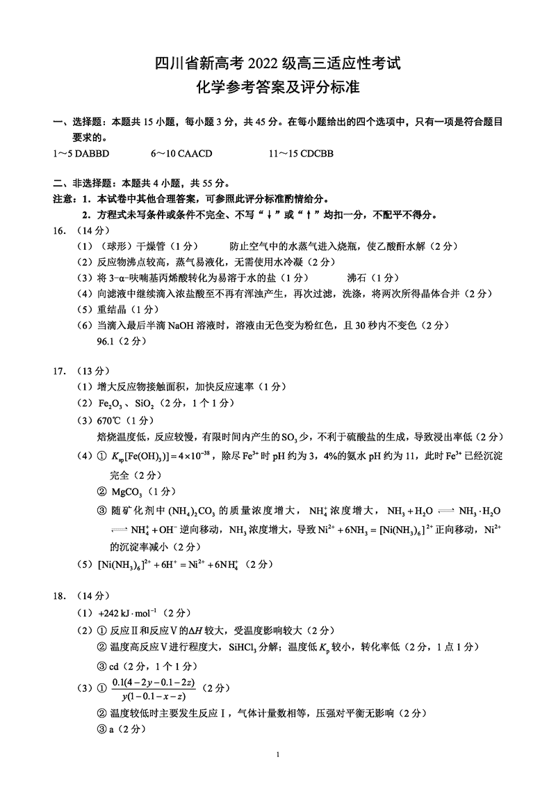 四川蓉城名校联盟新高考2025届高三5月适应性考化学考试已于近日开考,为方便考生考后及时查看考试情况,查漏补缺、弥补不足,本文整理了试题答案解析相关信息!