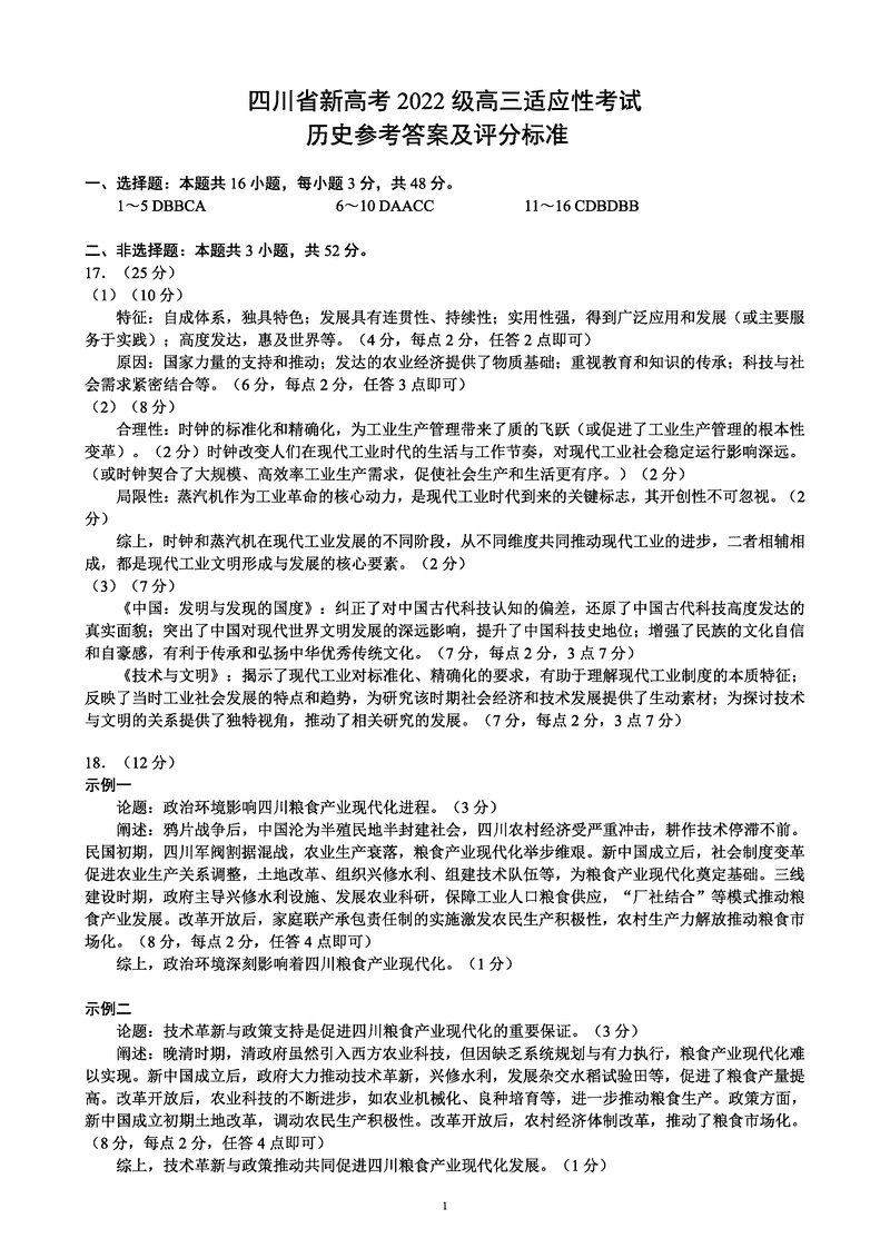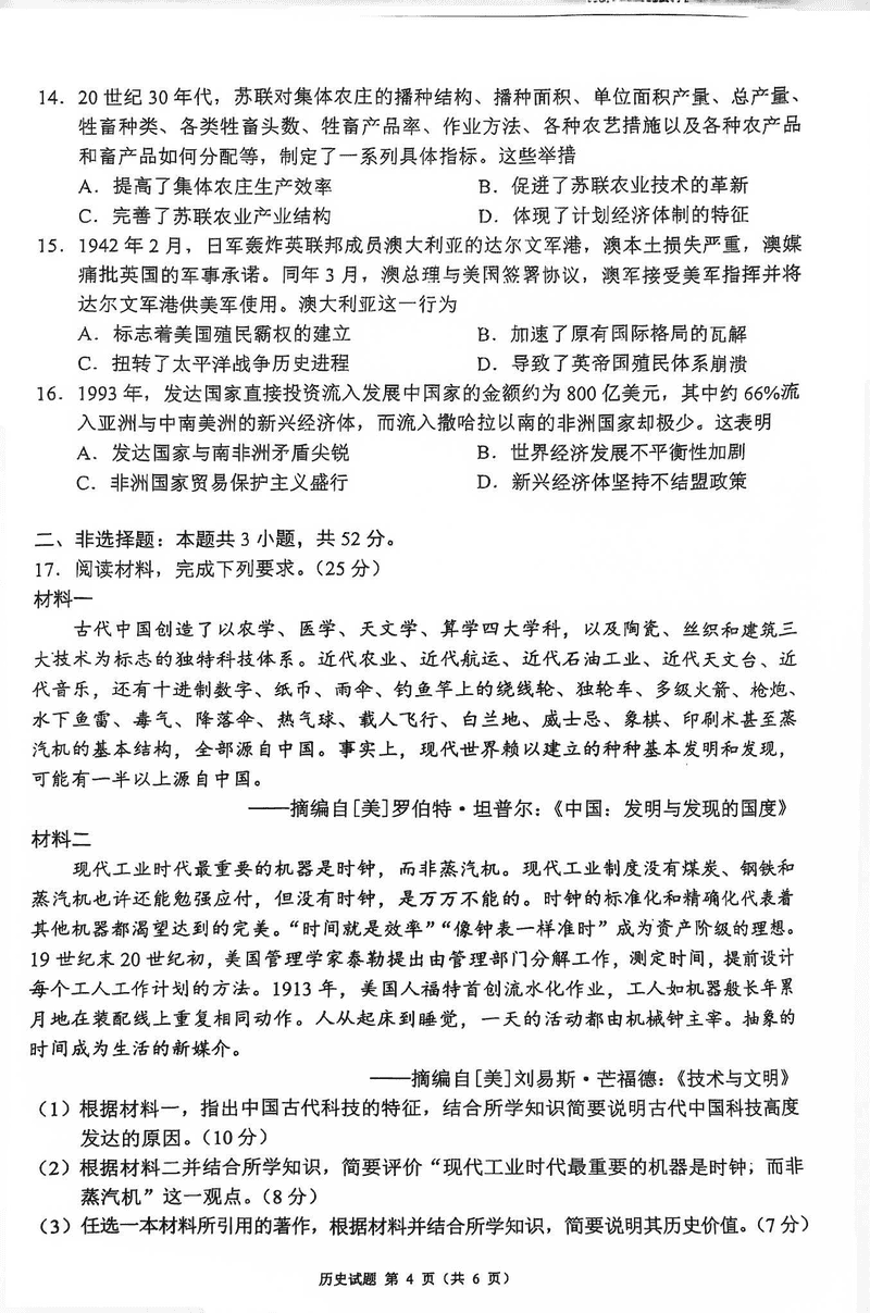 四川蓉城名校联盟新高考2025届高三5月适应性考历史试题及答案