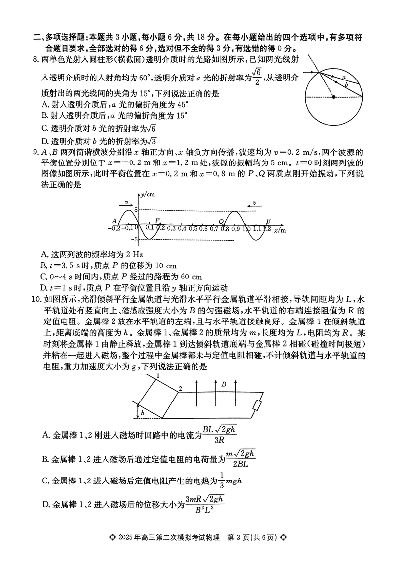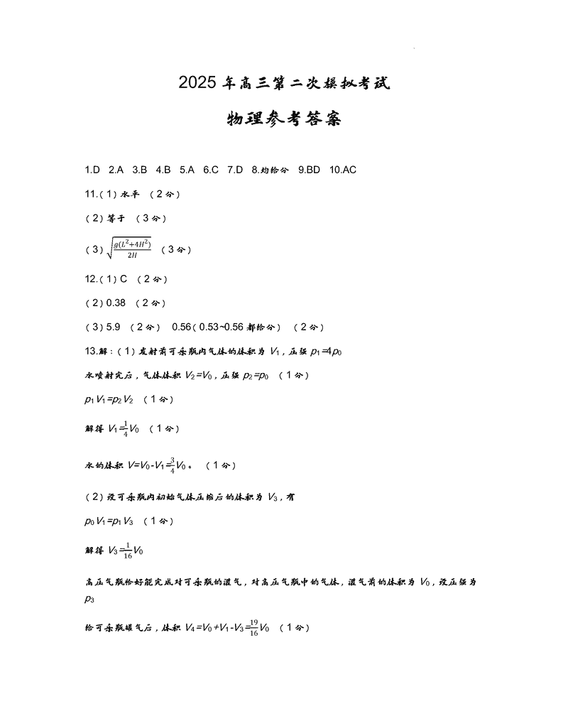 2025届河北保定高三二模物理试题及答案 时间:2025-05-16 河北 理综试题 2025届河北保定高三二模物理考试已于近日开考,为方便考生考后及时查看考试情况,查漏补缺、弥补不足,本文整理了试题答案解析相关信息! 汇总:2025届河北保定高三二模试题及答案汇总 物理试题及答案解析