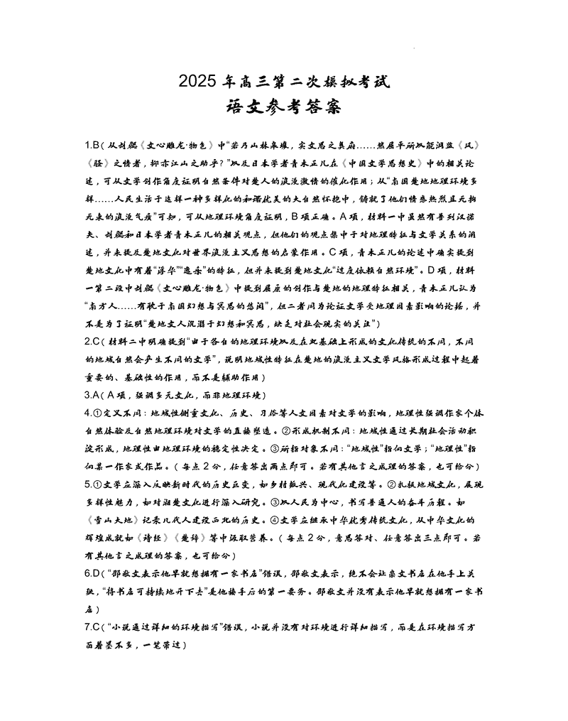 2025届河北保定高三二模语文试题及答案 时间:2025-05-16 河北 语文试题 2025届河北保定高三二模语文考试已于近日开考,为方便考生考后及时查看考试情况,查漏补缺、弥补不足,本文整理了试题答案解析相关信息! 汇总:2025届河北保定高三二模试题及答案汇总 语文试题及答案解析