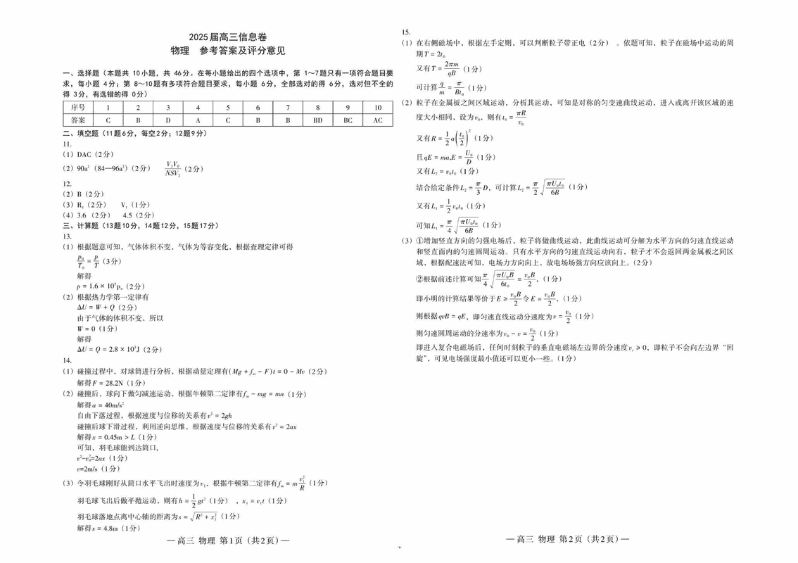 南昌三模2025届高三信息卷物理试题及答案 时间:2025-05-16 江西 理综试题 南昌三模2025届高三信息卷物理考试已于近日开考,为方便考生考后及时查看考试情况,查漏补缺、弥补不足,本文整理了试题答案解析相关信息! 汇总:南昌三模2025届高三信息卷试题及答案汇总 物理试题及答案解析
