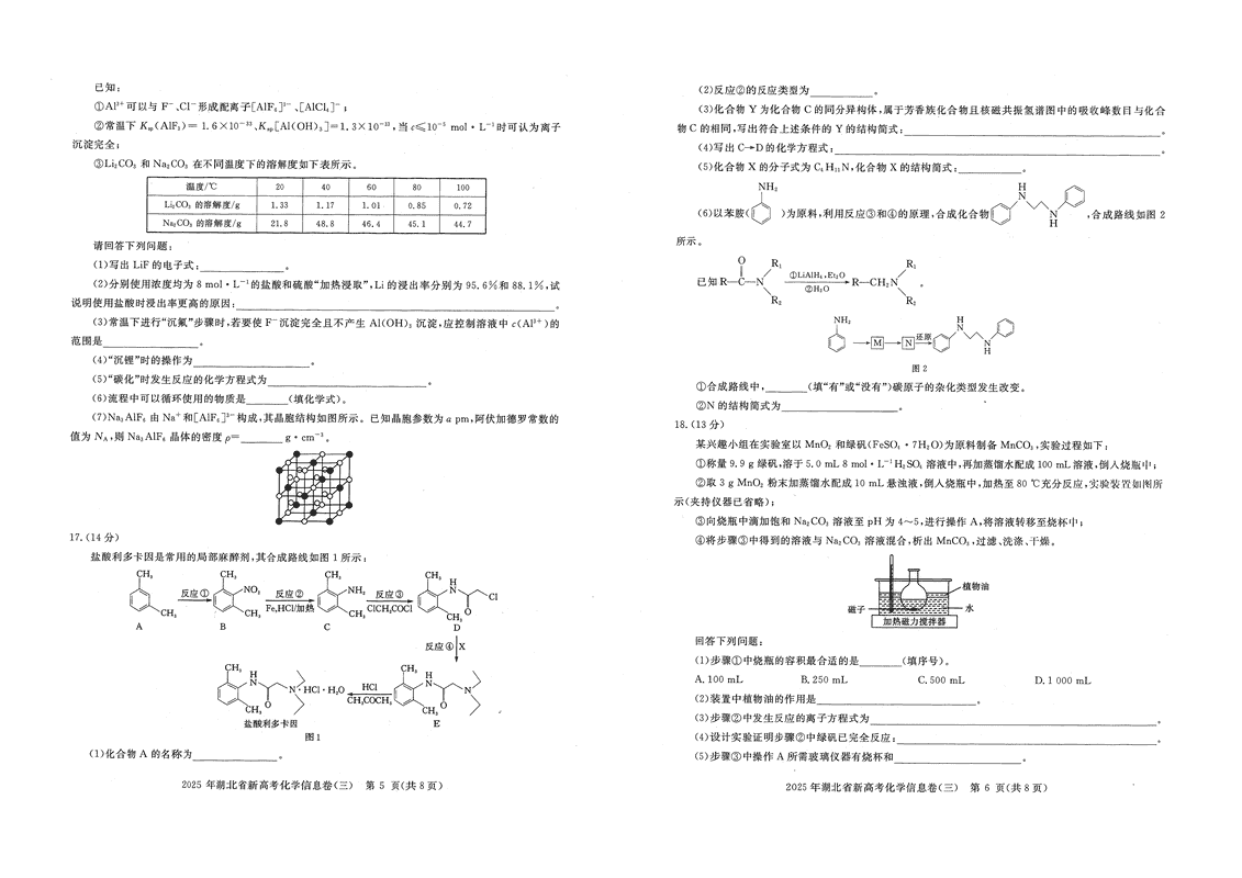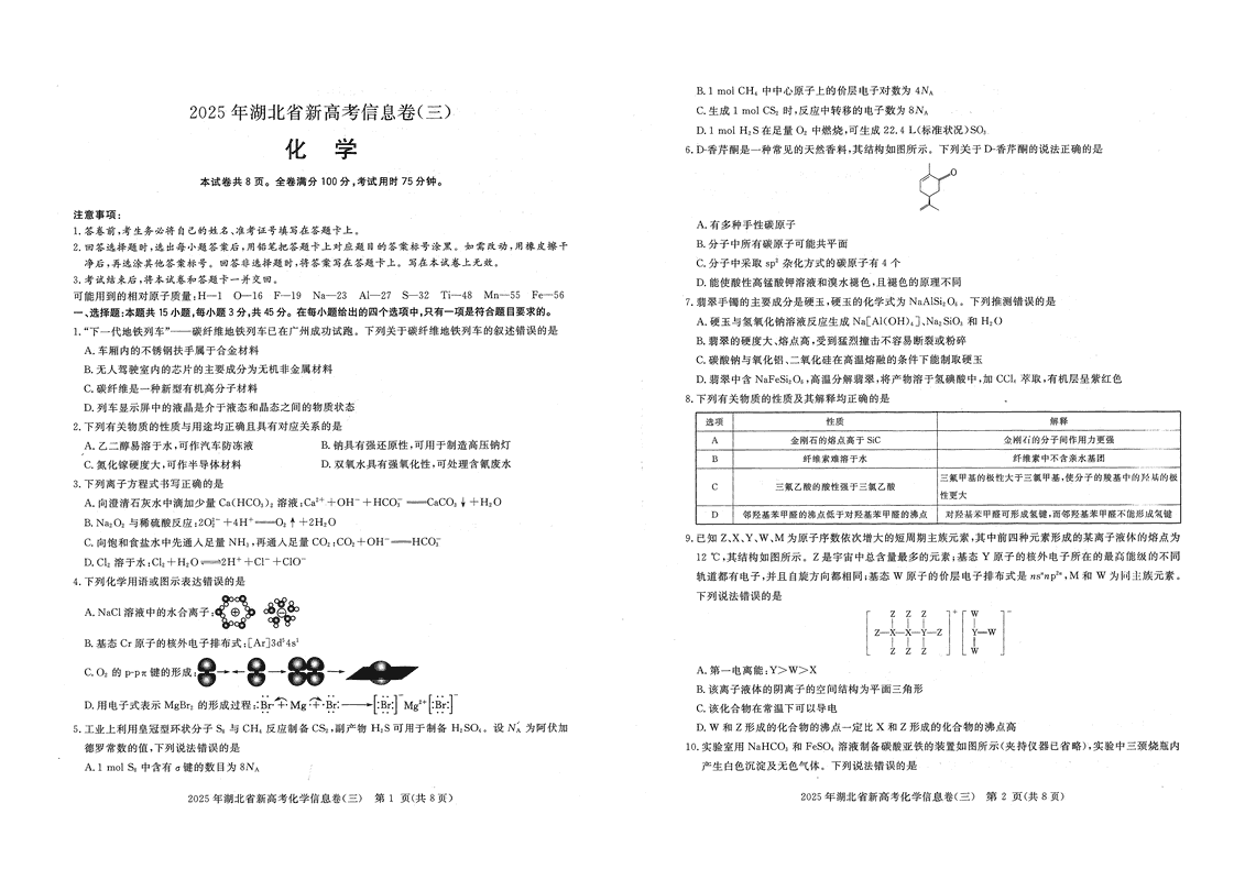 2025年湖北省新高考信息卷(三)化学试题及答案 时间:2025-05-16 湖北 理综试题 2025年湖北省新高考信息卷(三)化学考试已于近日开考,为方便考生考后及时查看考试情况,查漏补缺、弥补不足,本文整理了试题答案解析相关信息! 汇总:2025年湖北省新高考信息卷(三)试题及答案汇总 化学试题及答案解析
