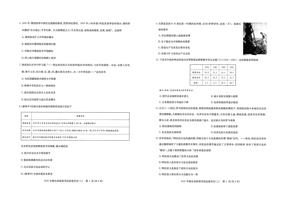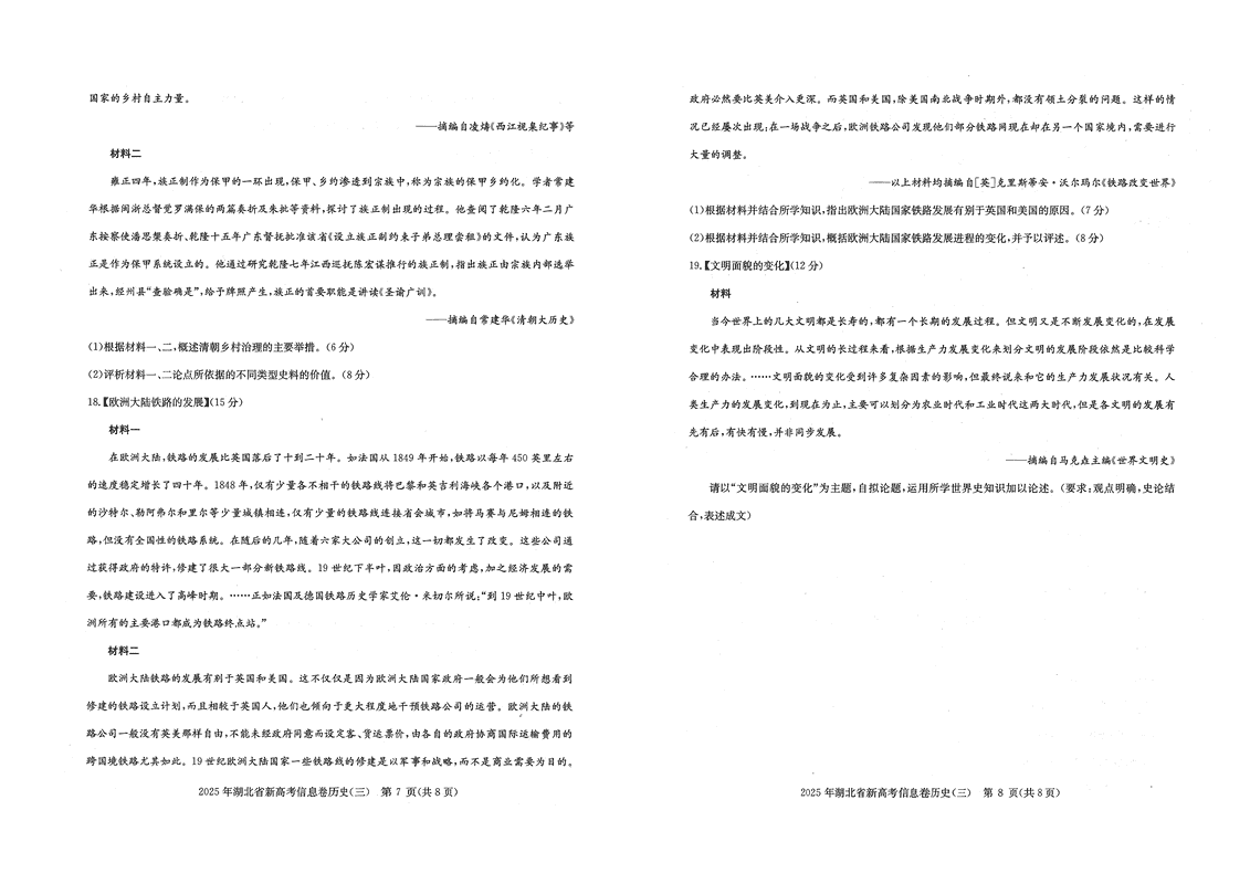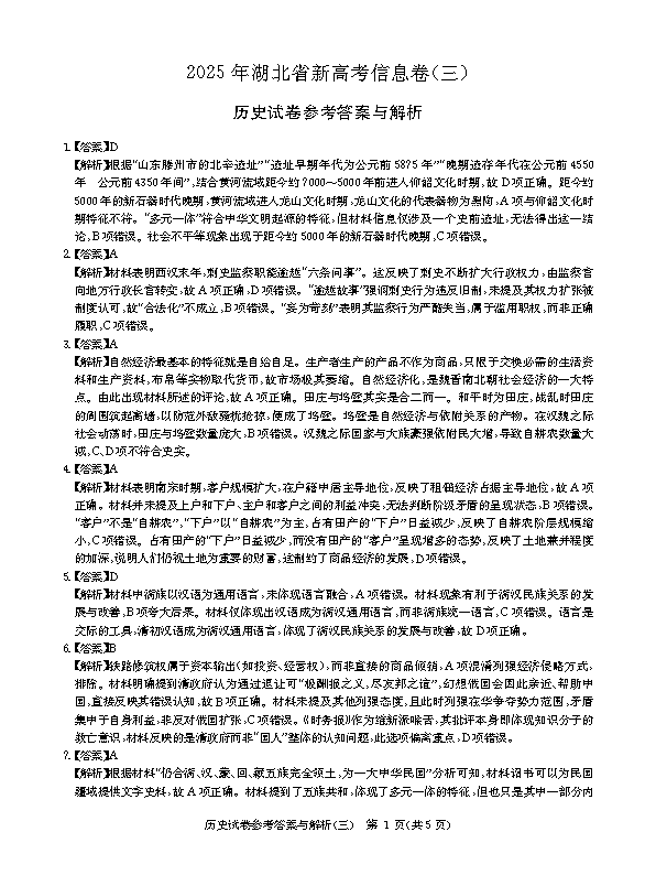 2025年湖北省新高考信息卷(三)历史试题及答案 时间:2025-05-16 湖北 文综试题 2025年湖北省新高考信息卷(三)历史考试已于近日开考,为方便考生考后及时查看考试情况,查漏补缺、弥补不足,本文整理了试题答案解析相关信息! 汇总:2025年湖北省新高考信息卷(三)试题及答案汇总 历史试题及答案解析