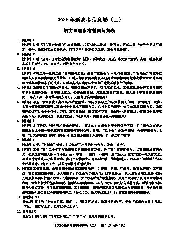 2025年湖北省新高考信息卷(三)语文试题及答案 时间:2025-05-16 湖北 语文试题 2025年湖北省新高考信息卷(三)语文考试已于近日开考,为方便考生考后及时查看考试情况,查漏补缺、弥补不足,本文整理了试题答案解析相关信息! 汇总:2025年湖北省新高考信息卷(三)试题及答案汇总 语文试题及答案解析