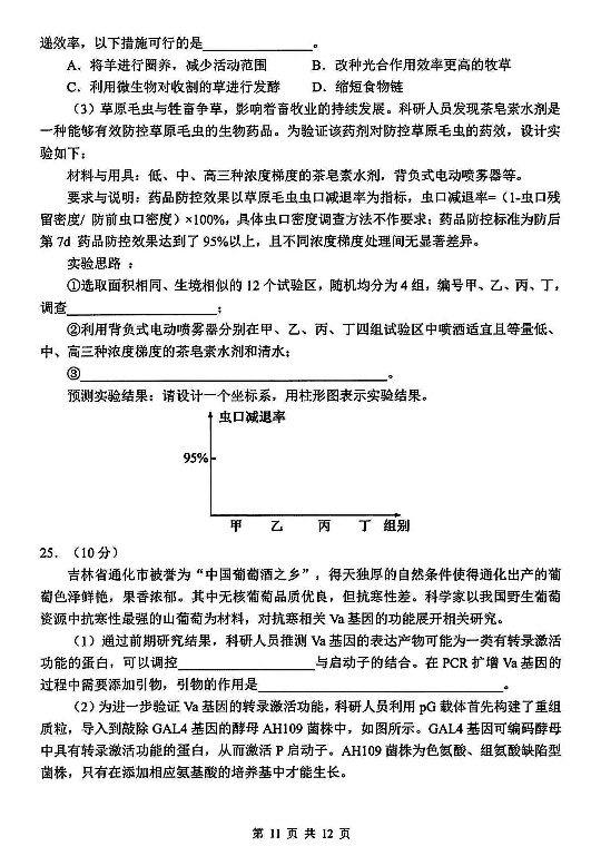 东北师大附中2025高三下学期第四次模考生物试题及答案