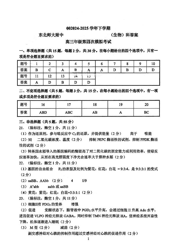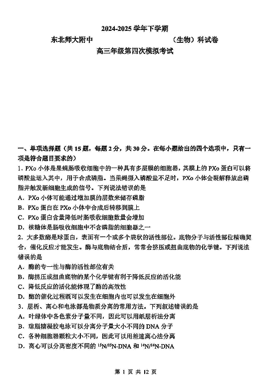 东北师大附中2025高三下学期第四次模考生物考试已于近日开考,为方便考生考后及时查看考试情况,查漏补缺、弥补不足,本文整理了试题答案解析相关信息!