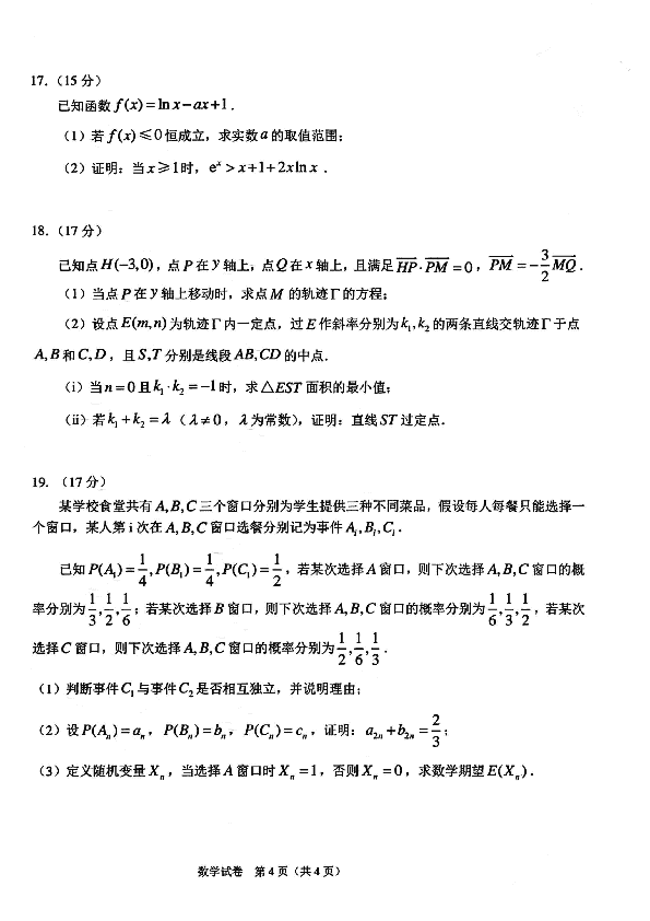 东北师大附中2025高三下学期第四次模考数学试题及答案