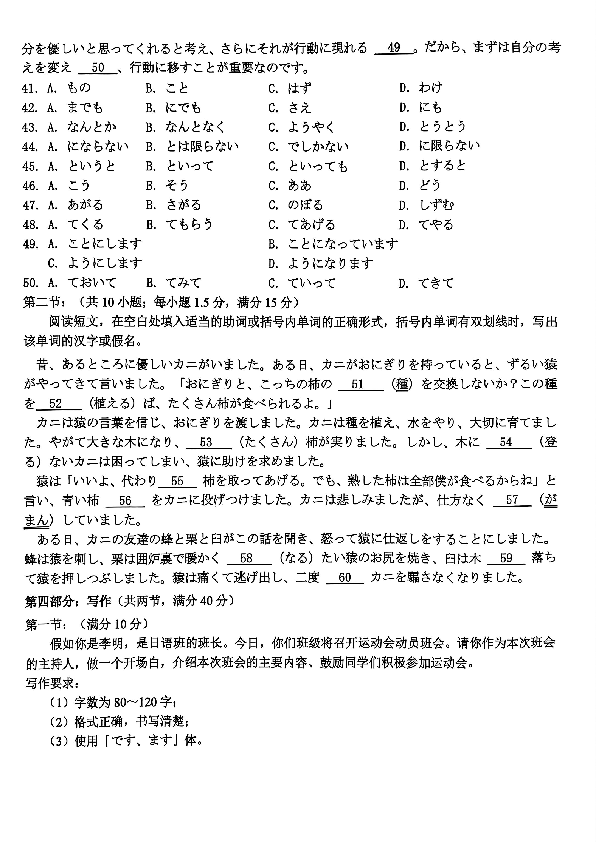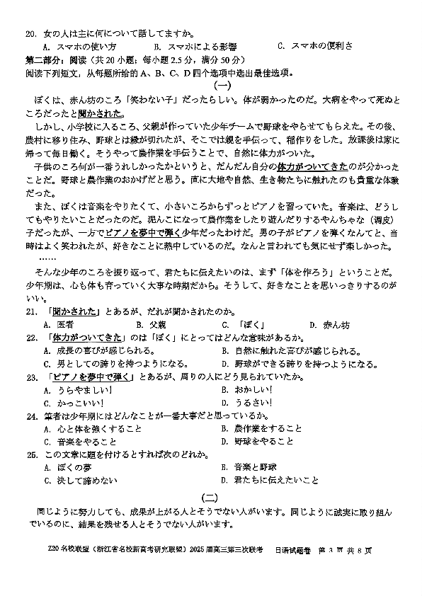 浙江Z20名校联盟2025届高三第三次联考日语试题及答案