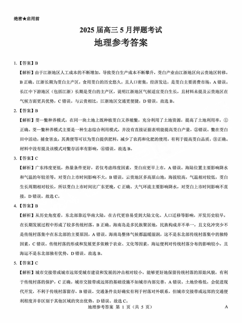 太原三模2025届三重教育高三5月押题地理考试已于近日开考,为方便考生考后及时查看考试情况,查漏补缺、弥补不足,本文整理了试题答案解析相关信息!