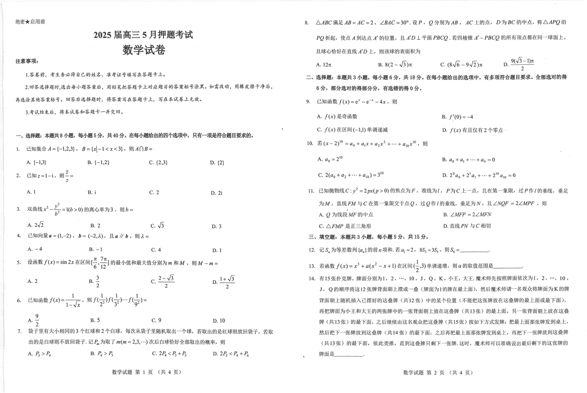 太原三模2025届三重教育高三5月押题数学试题及答案