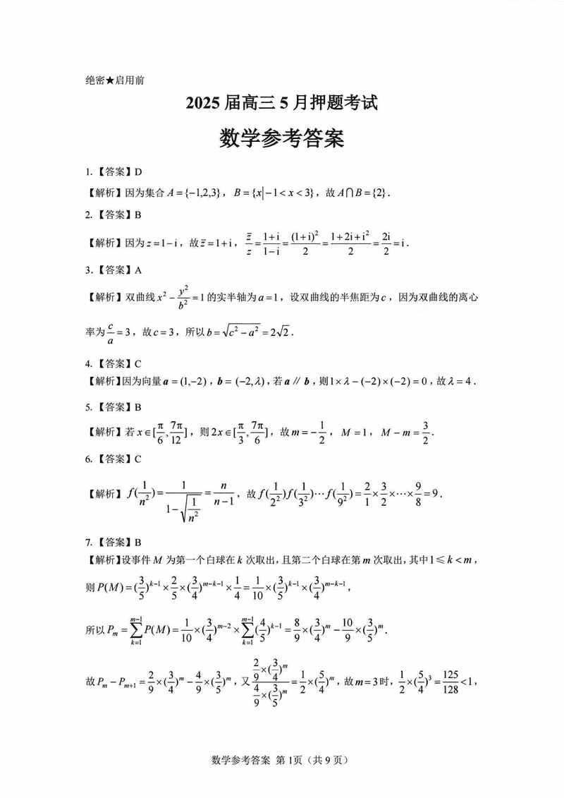 太原三模2025届三重教育高三5月押题数学考试已于近日开考,为方便考生考后及时查看考试情况,查漏补缺、弥补不足,本文整理了试题答案解析相关信息!