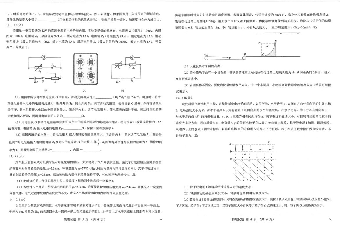 太原三模2025届三重教育高三5月押题物理试题及答案