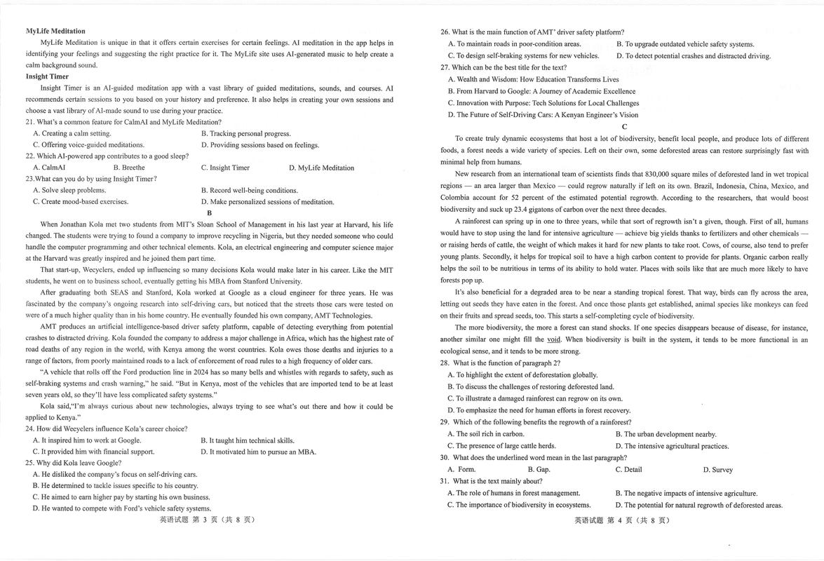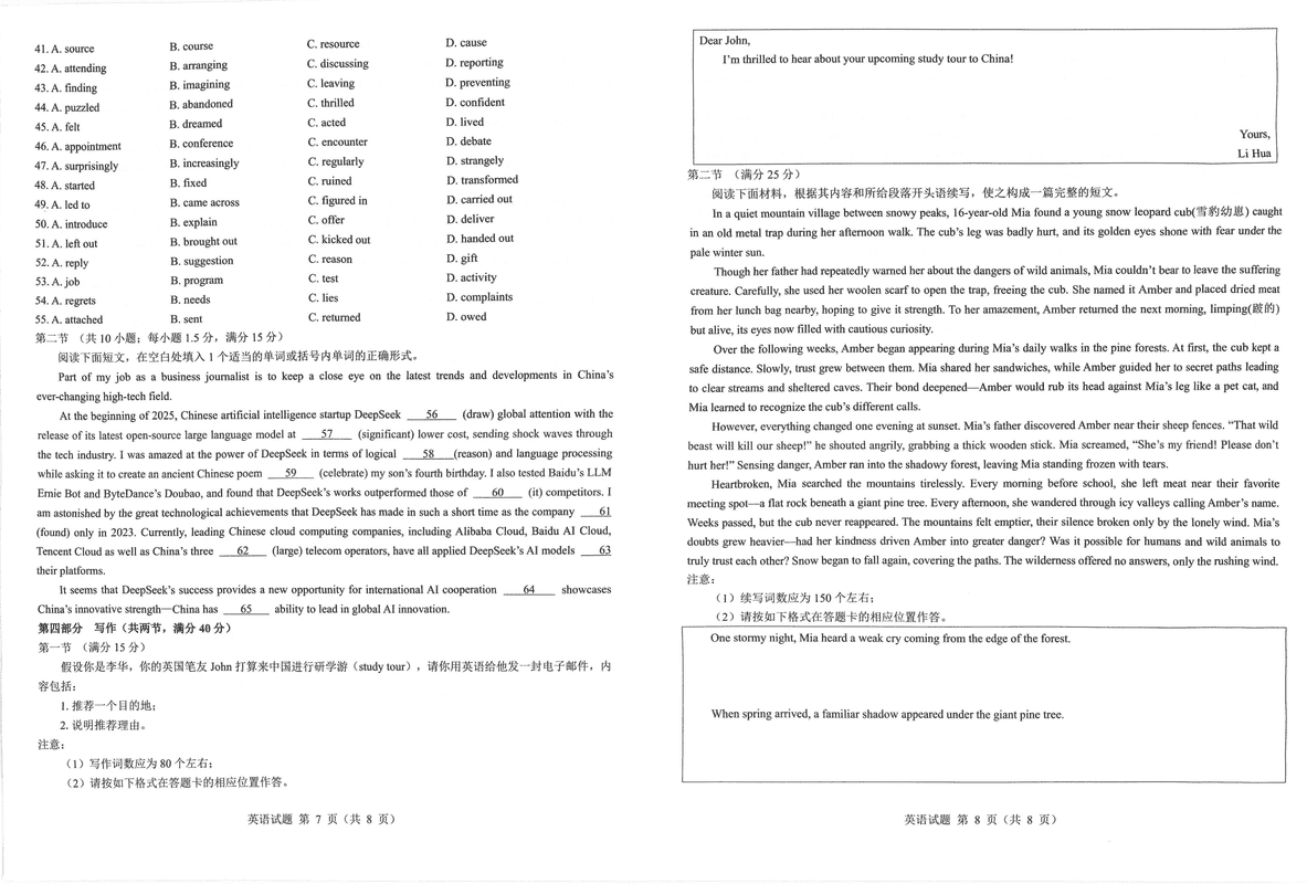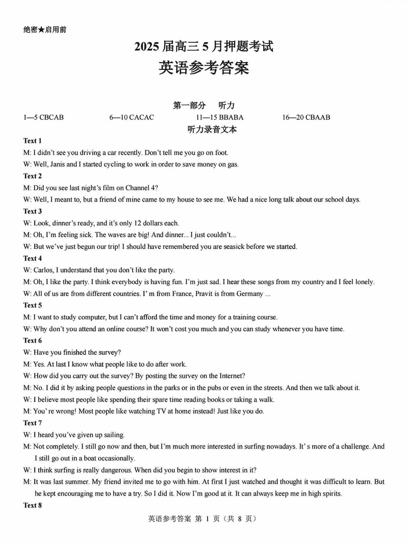 太原三模2025届三重教育高三5月押题英语考试已于近日开考,为方便考生考后及时查看考试情况,查漏补缺、弥补不足,本文整理了试题答案解析相关信息!