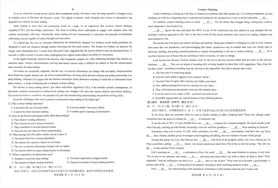 太原三模2025届三重教育高三5月押题英语试题及答案