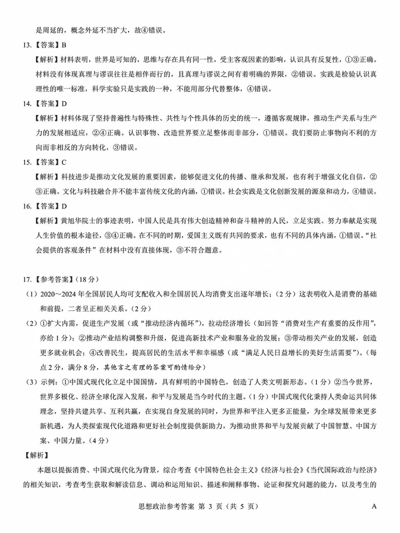 太原三模2025届三重教育高三5月押题政治试题及答案