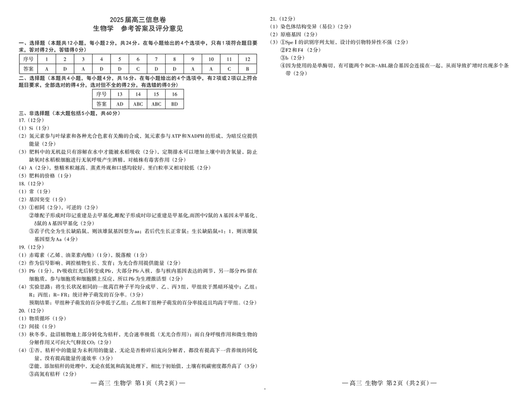南昌三模2025届高三信息卷生物试题及答案 时间:2025-05-17 江西 理综试题 南昌三模2025届高三信息卷生物考试已于近日开考,为方便考生考后及时查看考试情况,查漏补缺、弥补不足,本文整理了试题答案解析相关信息! 汇总:南昌三模2025届高三信息卷试题及答案汇总 生物试题及答案解析
