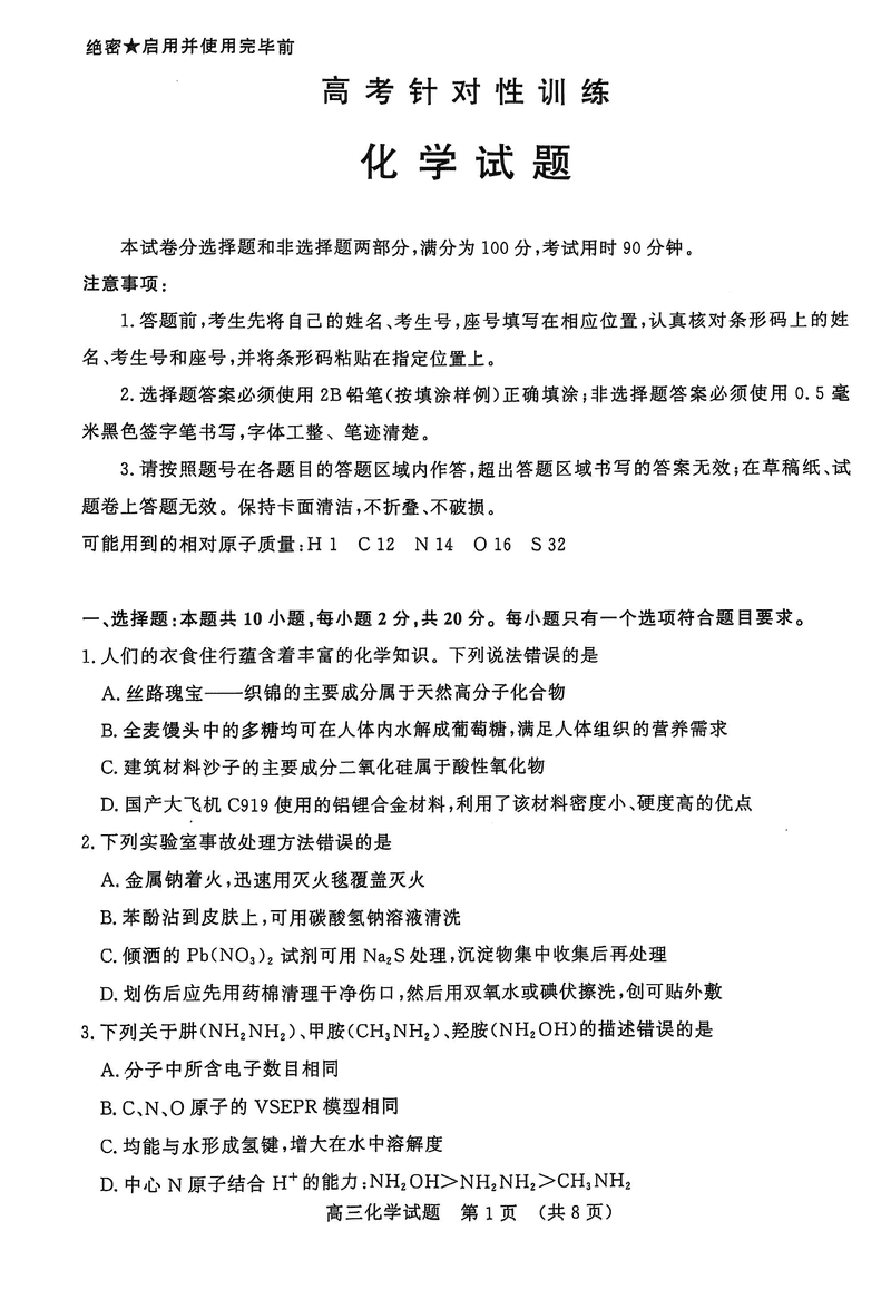 济南二模2025届高三5月针对性训练化学试题及答案 时间:2025-05-17 山东 理综试题 济南二模2025届高三下学期针对性训练化学考试已于近日开考,为方便考生考后及时查看考试情况,查漏补缺、弥补不足,本文整理了试题答案解析相关信息! 汇总:济南二模2025届高三下学期针对性训练试题及答案汇总 化学试题及答案解析