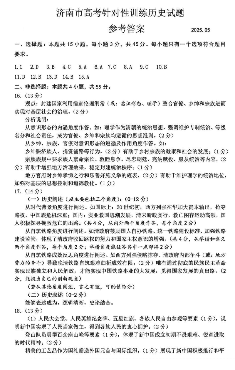 济南二模2025届高三5月针对性训练历史试题及答案 时间:2025-05-17 山东 文综试题 济南二模2025届高三下学期针对性训练历史考试已于近日开考,为方便考生考后及时查看考试情况,查漏补缺、弥补不足,本文整理了试题答案解析相关信息! 汇总:济南二模2025届高三下学期针对性训练试题及答案汇总 历史试题及答案解析