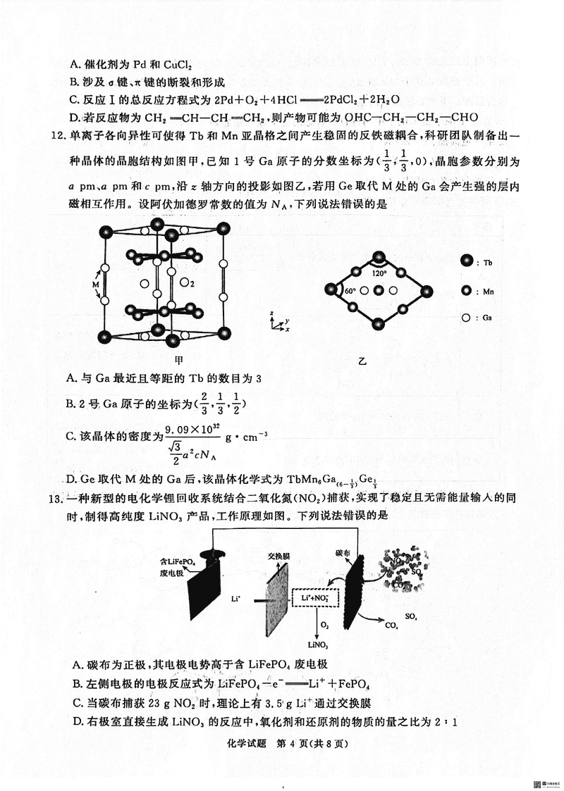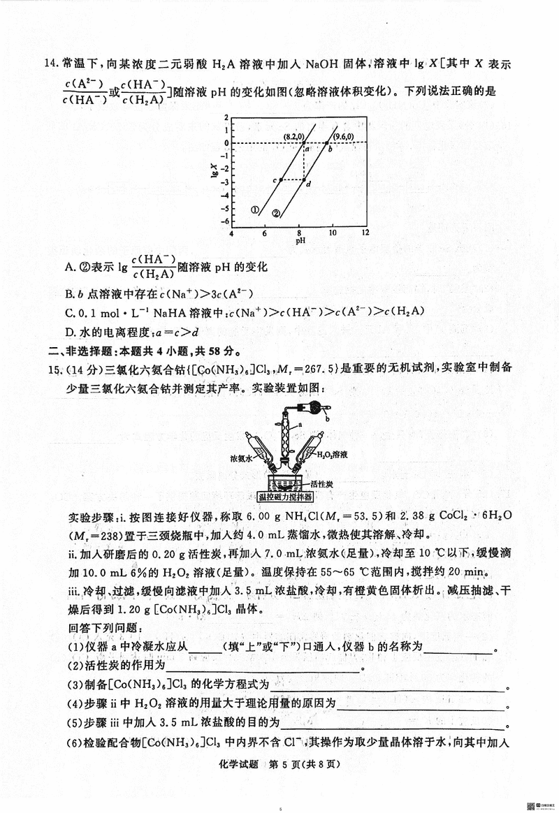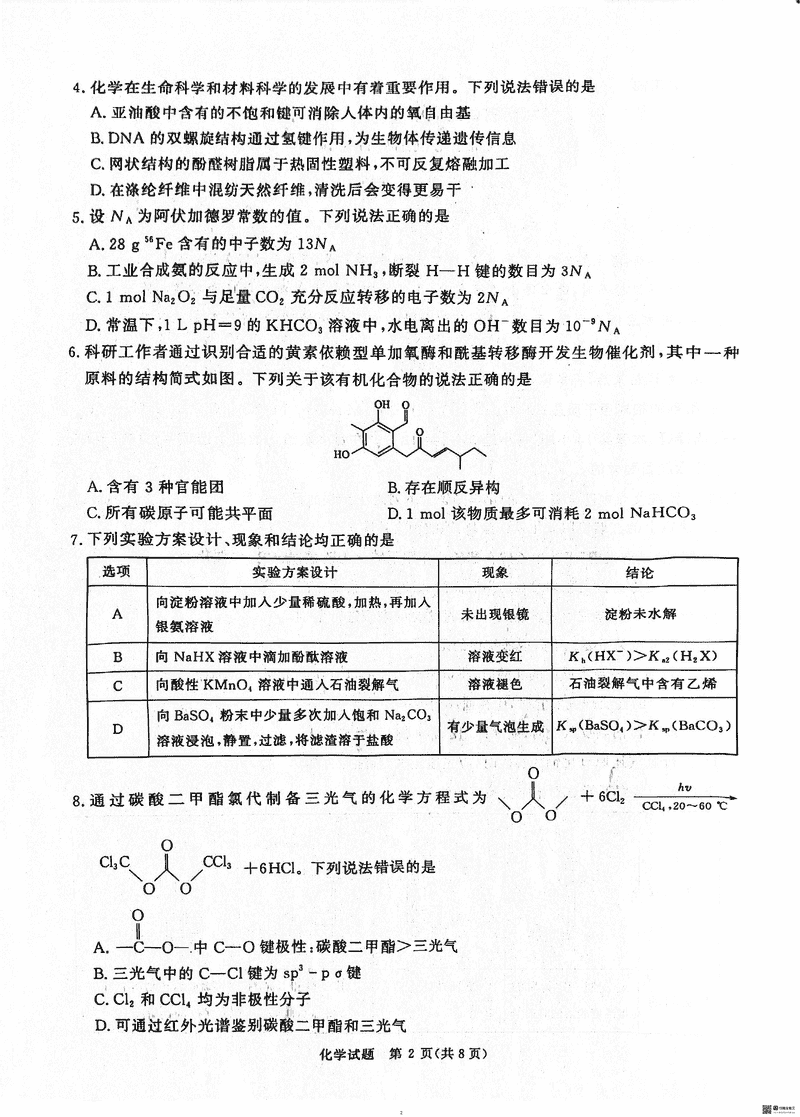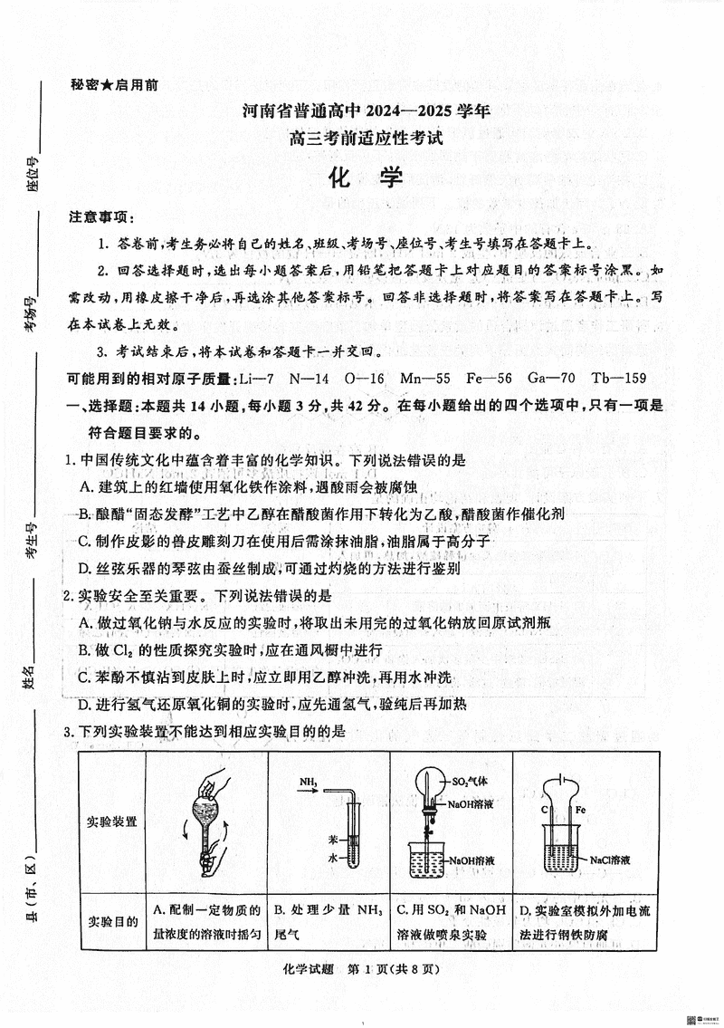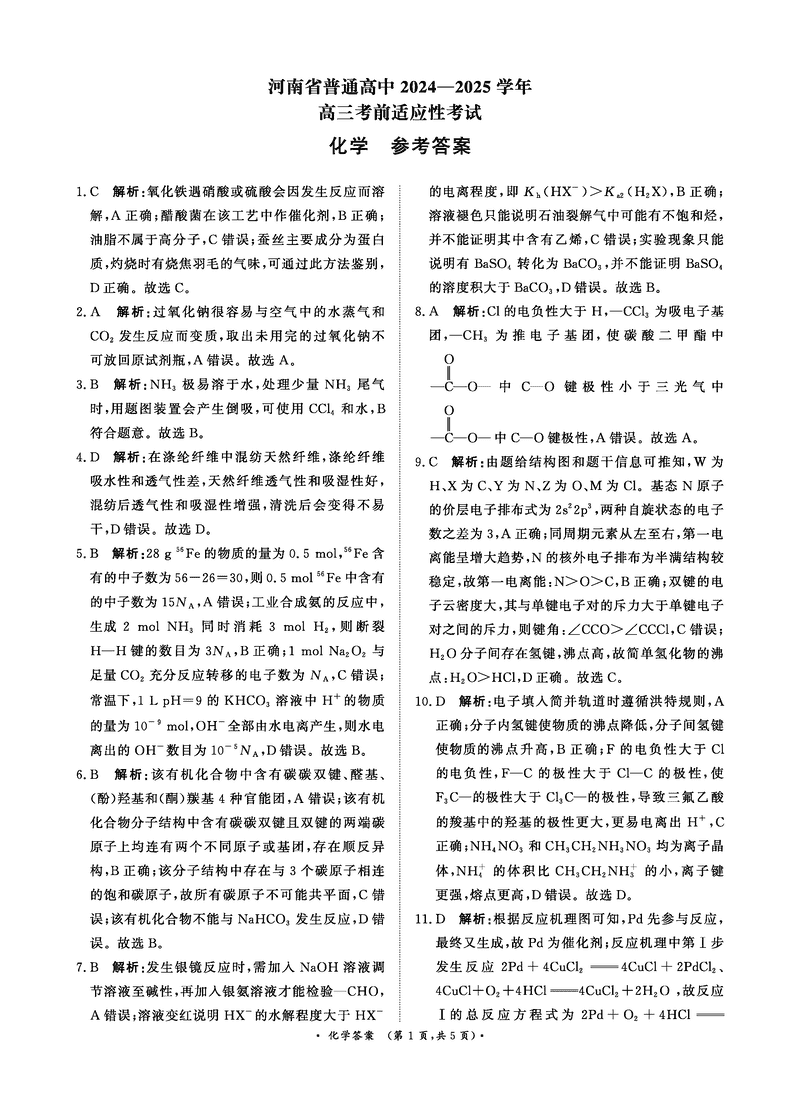 2025届河南青桐鸣5月高三考前适应性考化学试题及答案