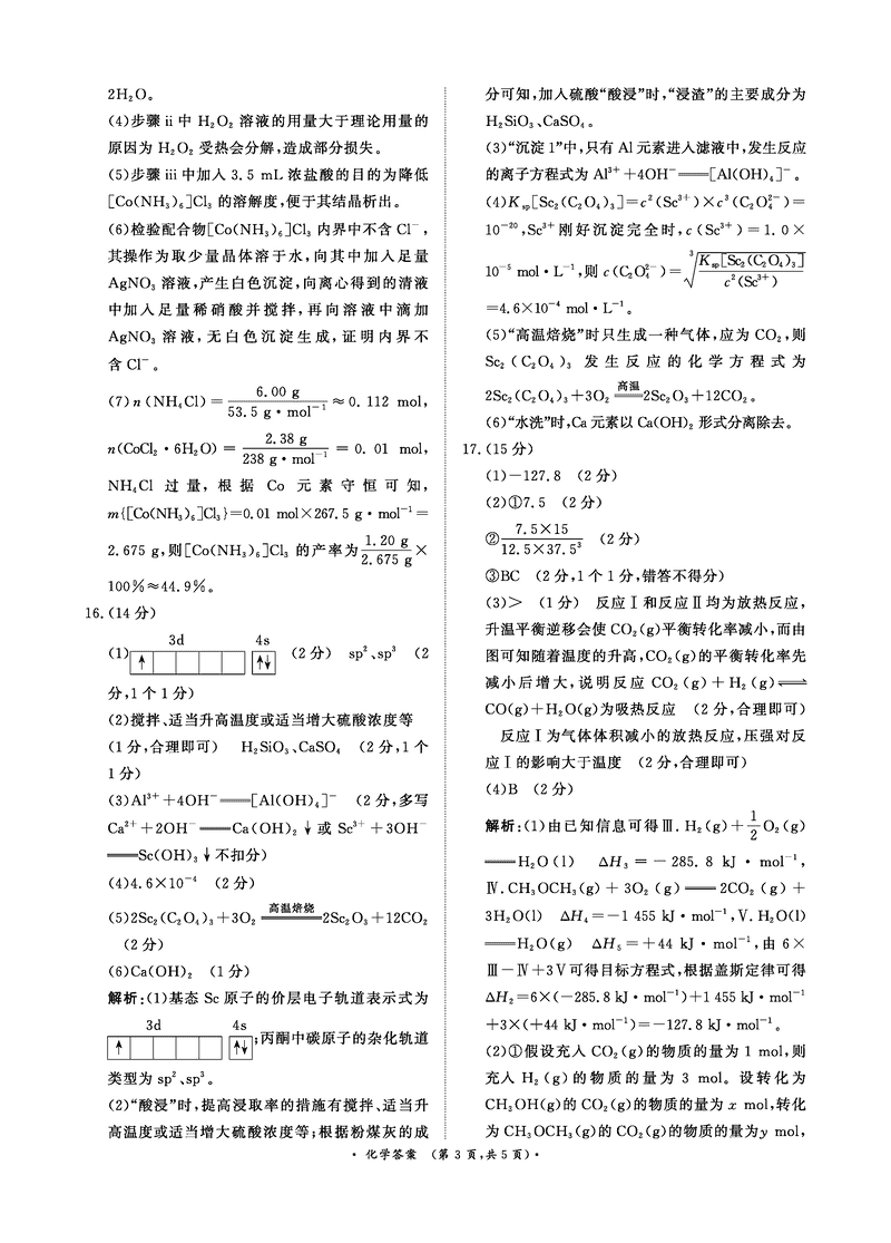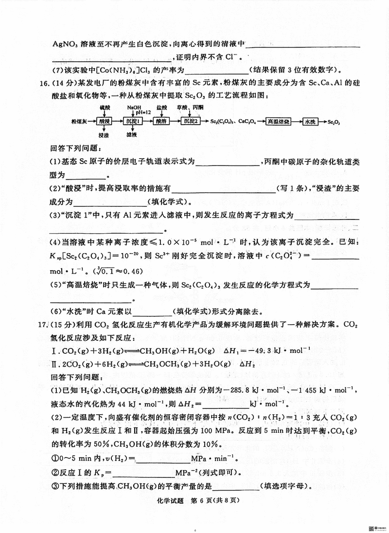 化学试题及答案解析