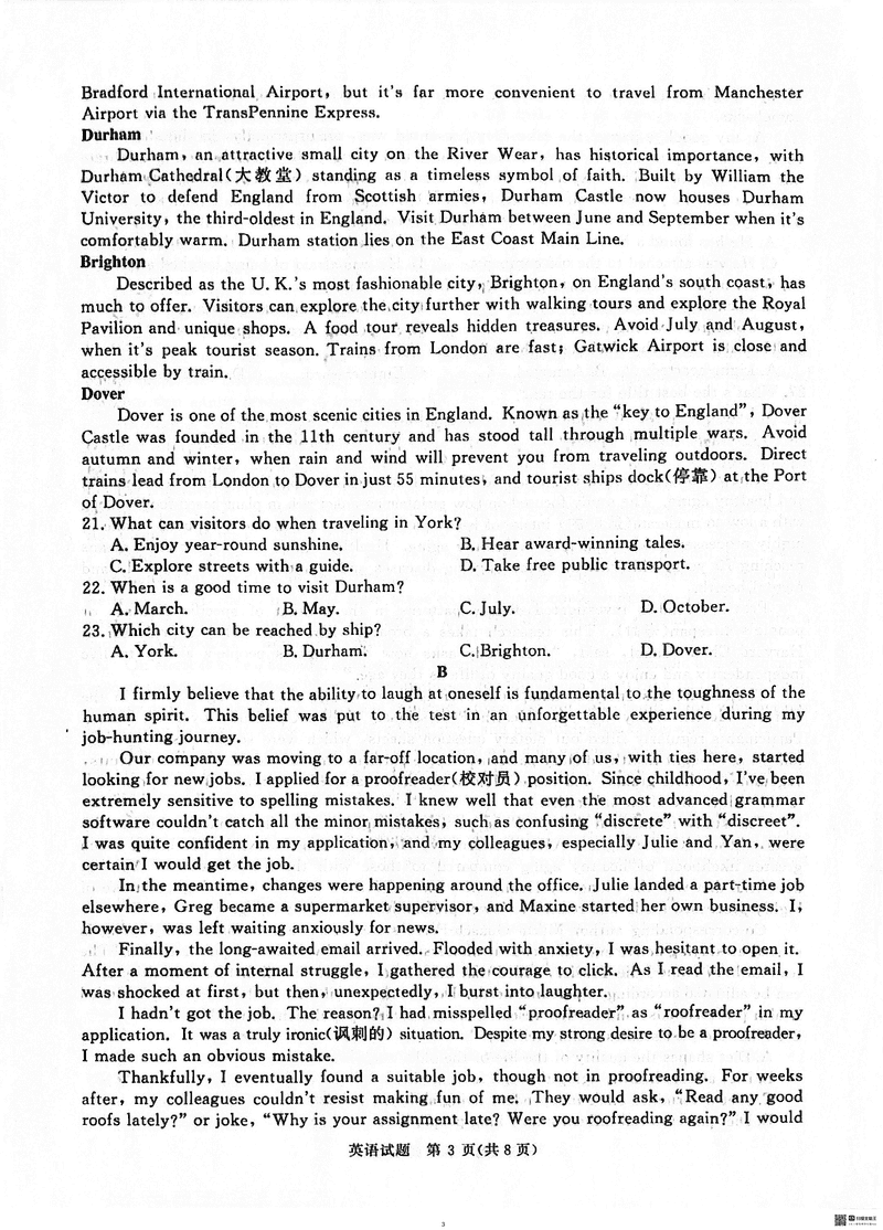 2025届河南青桐鸣5月高三考前适应性考英语考试已于近日开考,为方便考生考后及时查看考试情况,查漏补缺、弥补不足,本文整理了试题答案解析相关信息!