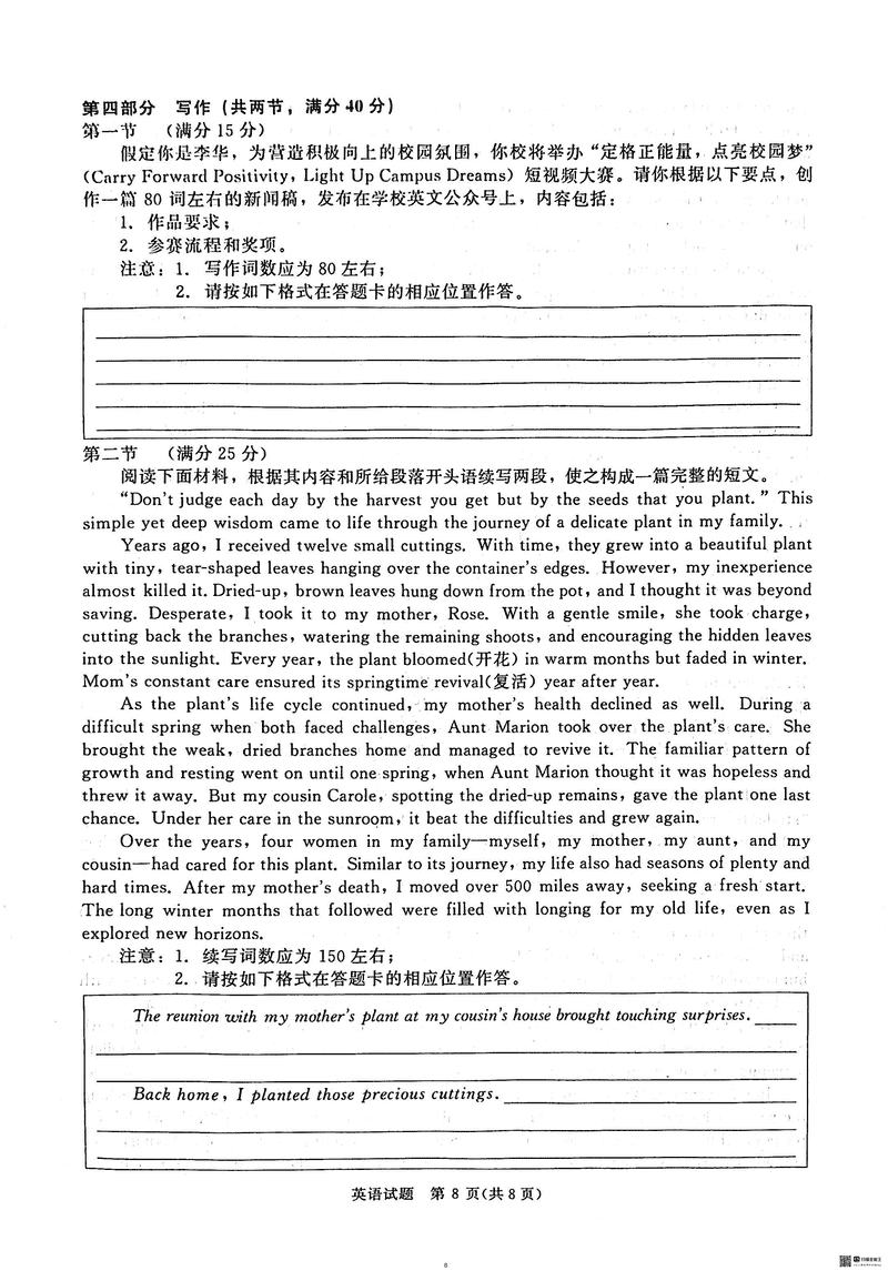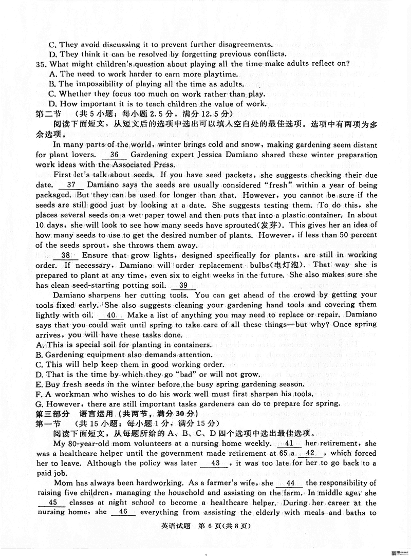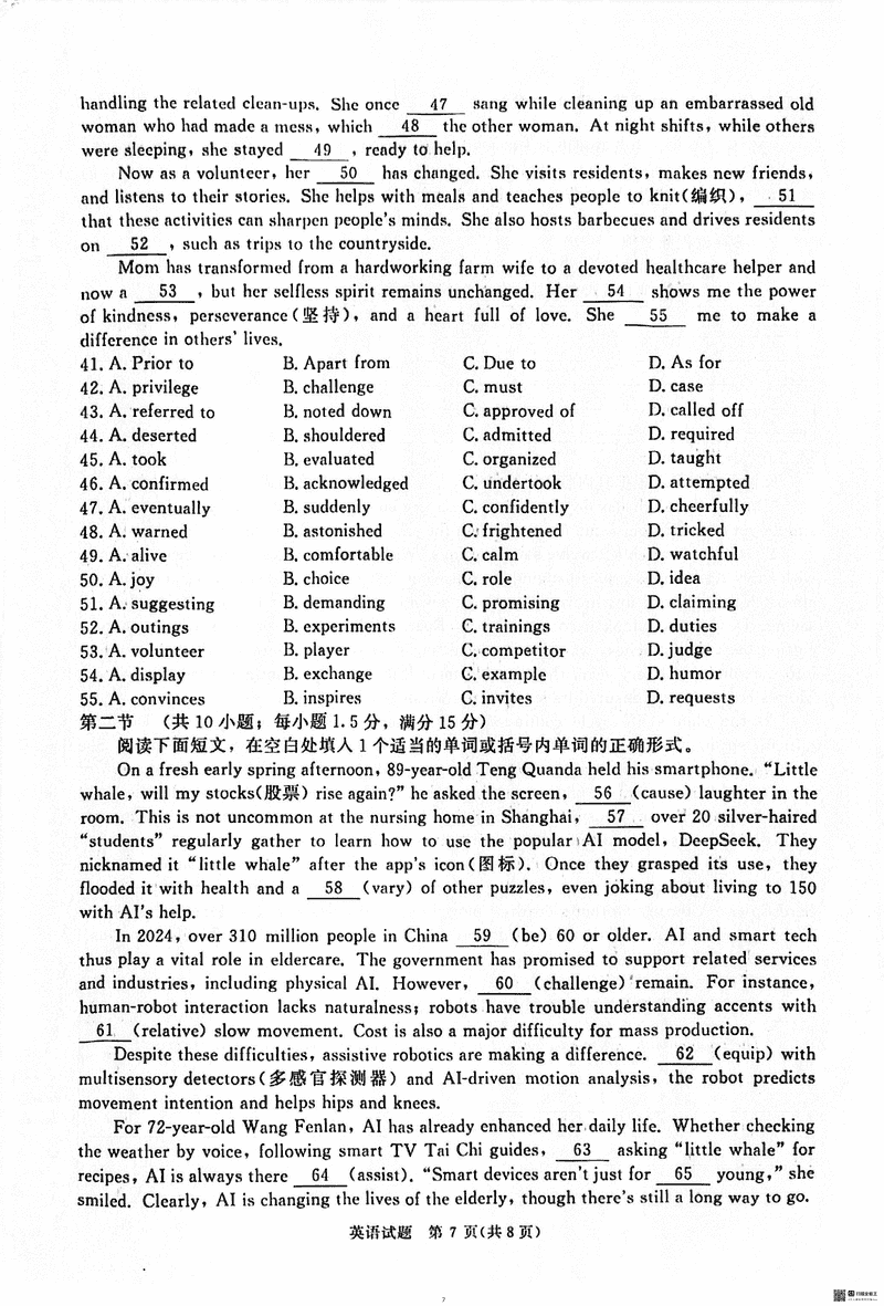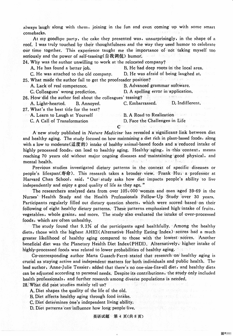 2025届河南青桐鸣5月高三考前适应性考英语试题及答案