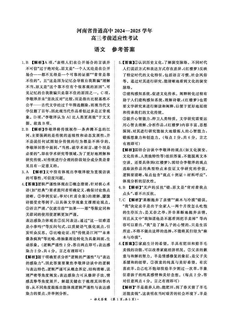 2025届河南青桐鸣5月高三考前适应性考语文考试已于近日开考,为方便考生考后及时查看考试情况,查漏补缺、弥补不足,本文整理了试题答案解析相关信息!