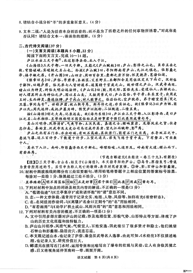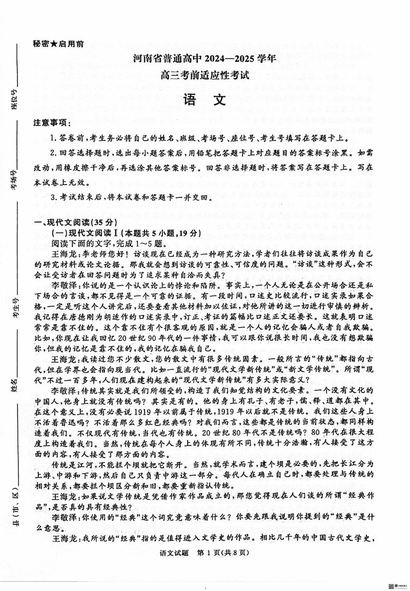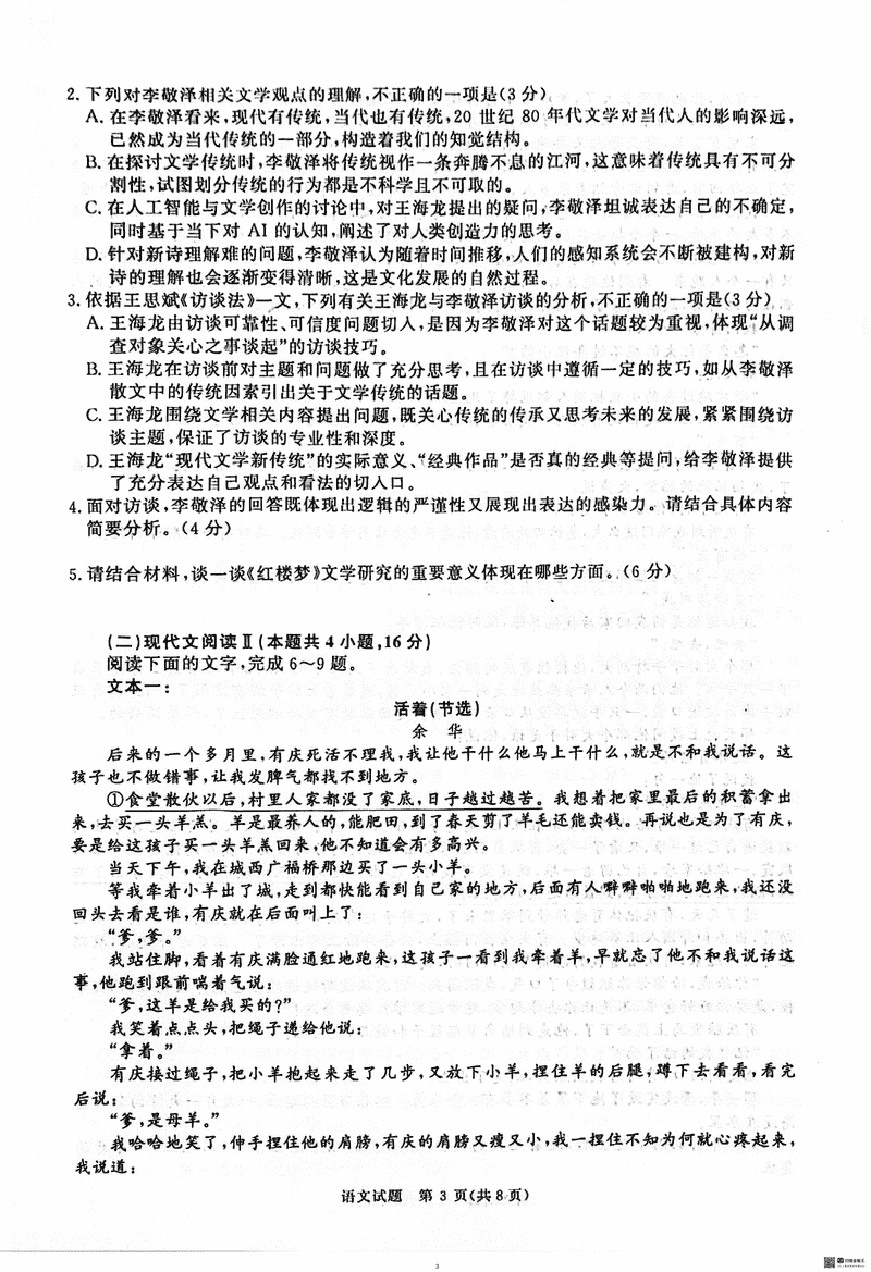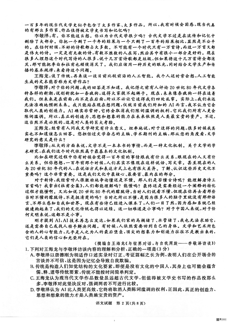 2025届河南青桐鸣5月高三考前适应性考语文试题及答案
