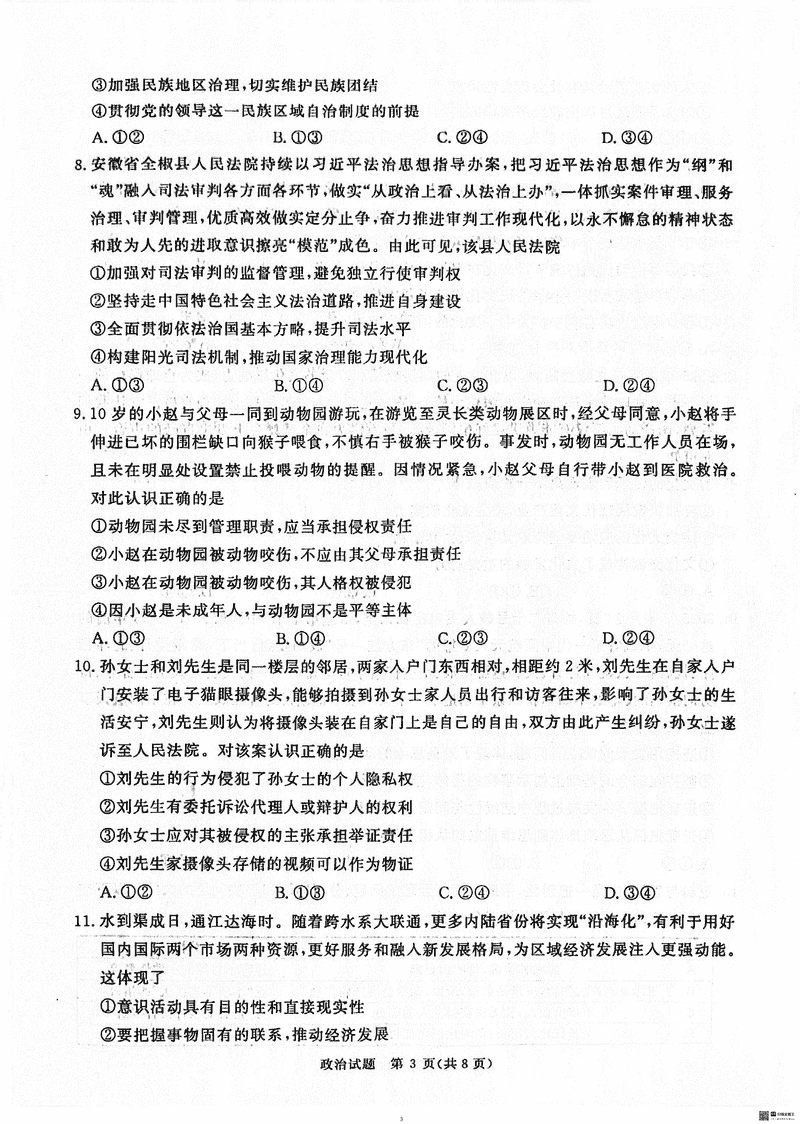 政治试题及答案解析