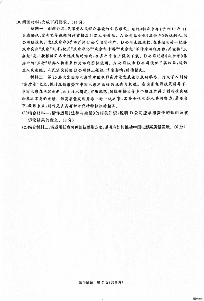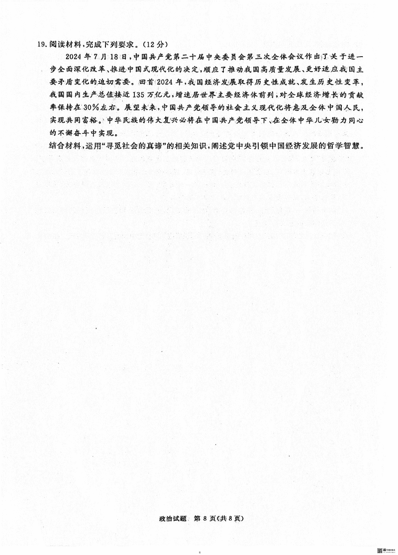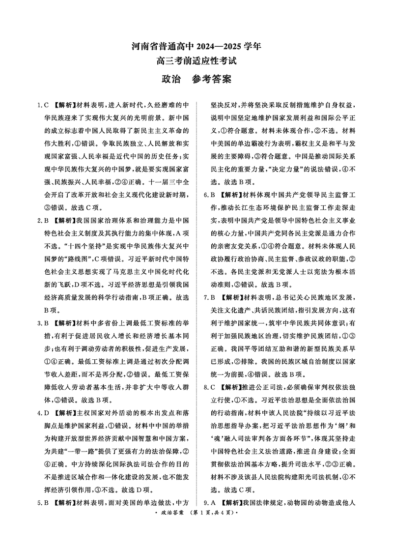 2025届河南青桐鸣5月高三考前适应性考政治考试已于近日开考,为方便考生考后及时查看考试情况,查漏补缺、弥补不足,本文整理了试题答案解析相关信息!