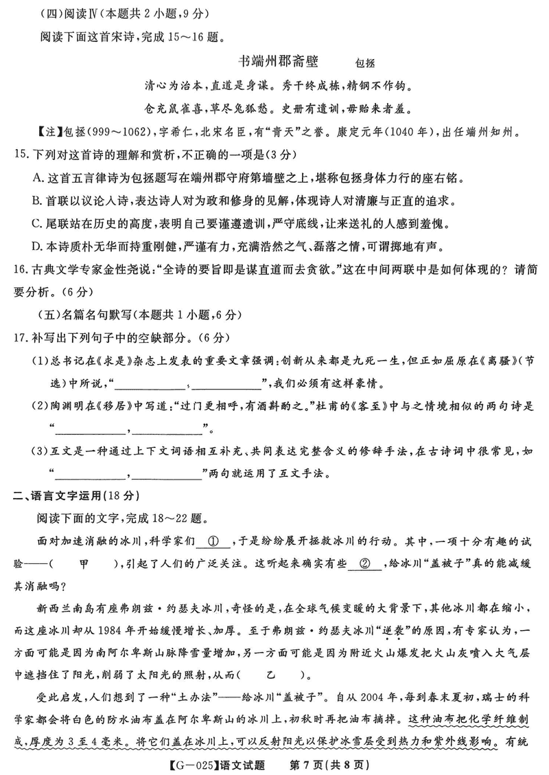 皖江名校联盟2025届高三最后一卷语文试题及答案 时间:2025-05-17 安徽 语文试题 皖江名校联盟2025届高三最后一卷语文考试已于近日开考,为方便考生考后及时查看考试情况,查漏补缺、弥补不足,本文整理了试题答案解析相关信息! 汇总:皖江名校联盟2025届高三最后一卷试题及答案汇总 语文试题及答案解析