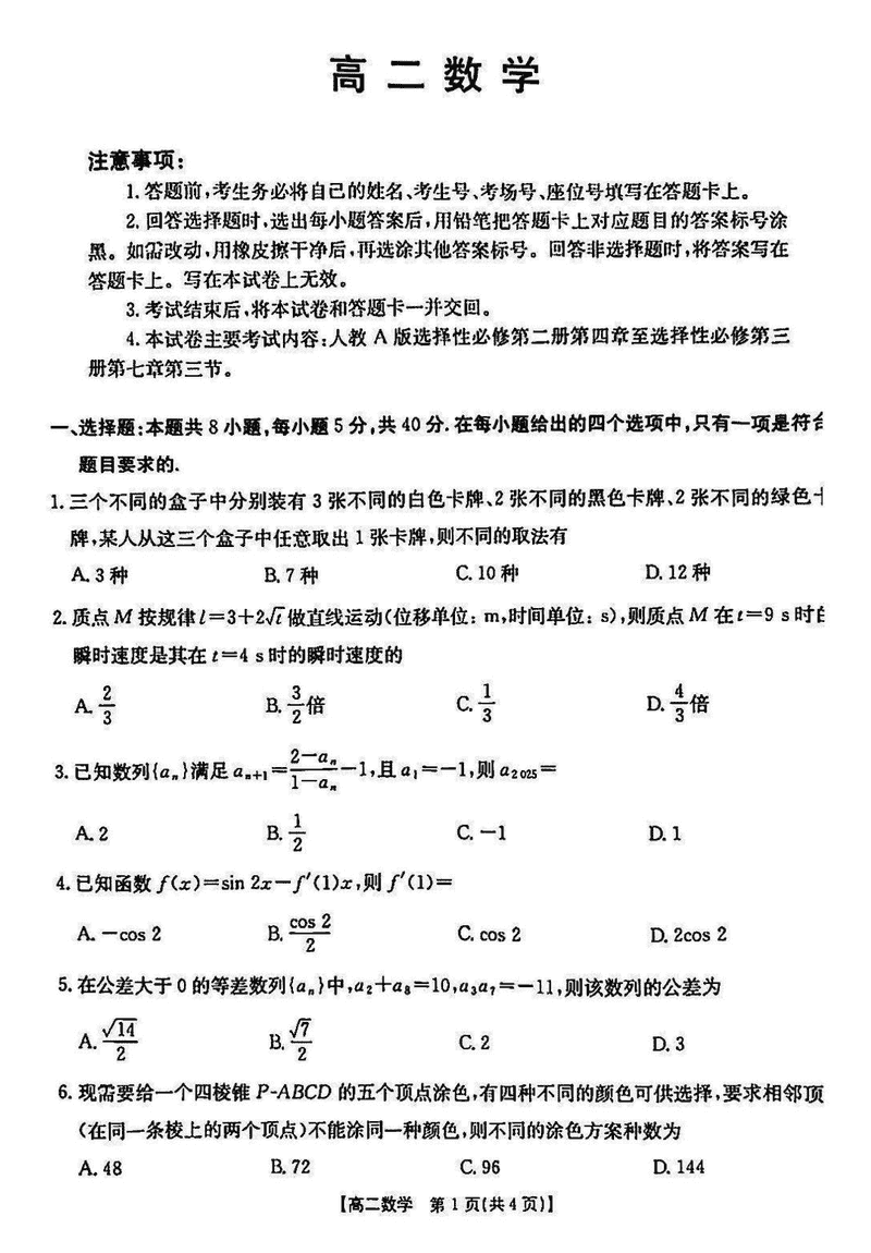 佛山H7联盟2024-2025学年高二下5月联考数学试题及答案 时间:2025-05-17 广东 高中数学 广东省佛山市H7联盟2024-2025学年高二下学期5月联考数学考试已于近日开考,为方便考生考后及时查看考试情况,查漏补缺、弥补不足,本文整理了试题答案解析相关信息! 汇总: 数学试题及答案解析