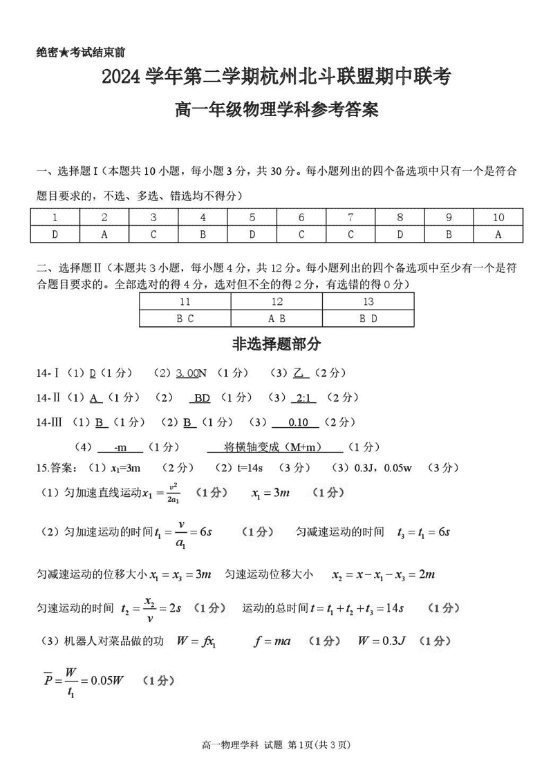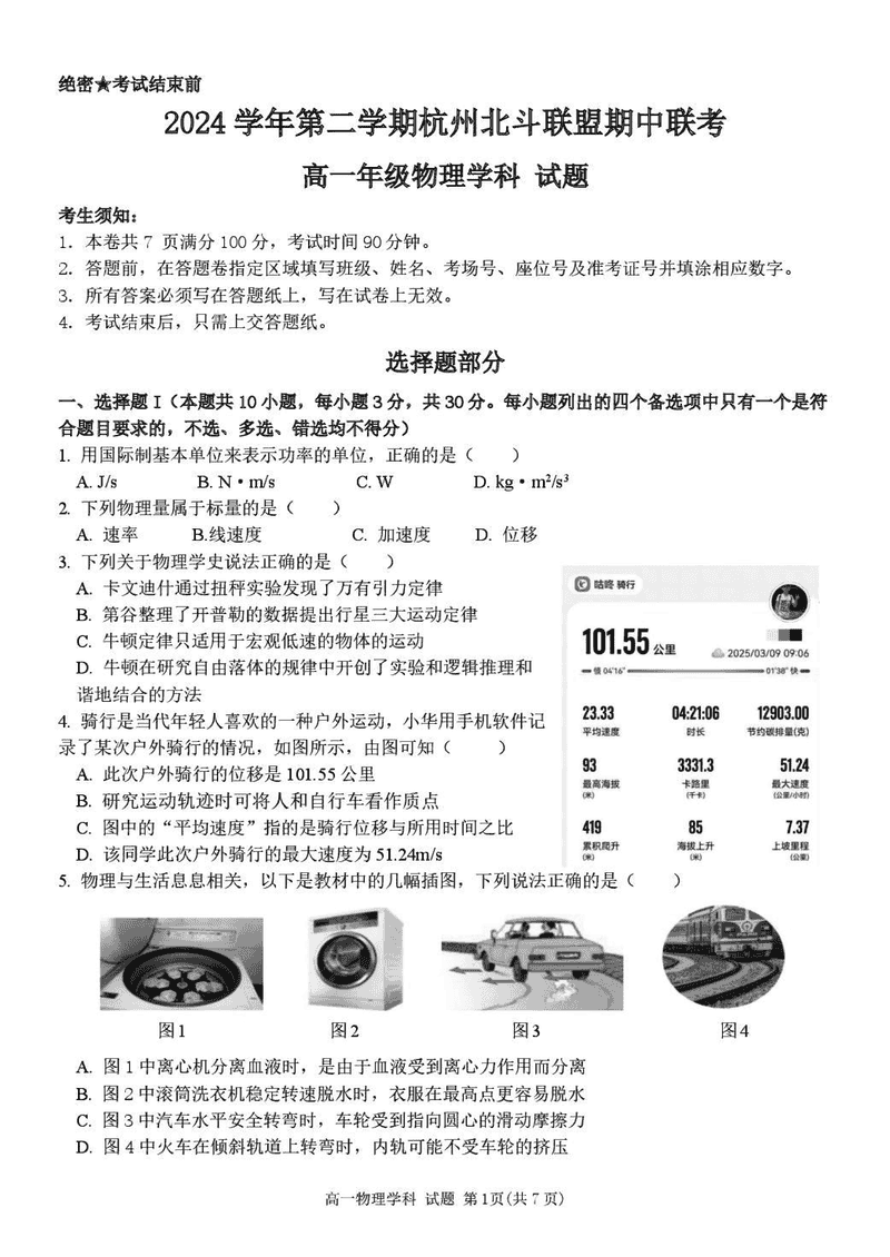 杭州北斗联盟2024-2025学年高一下4月期中联考物理试题及答案 时间:2025-05-17 浙江 高中物理 浙江省杭州市北斗联盟2024-2025学年高一下学期4月期中联考物理考试已于近日开考,为方便考生考后及时查看考试情况,查漏补缺、弥补不足,本文整理了试题答案解析相关信息! 物理试题及答案解析