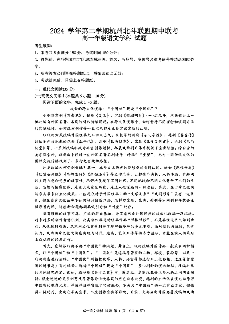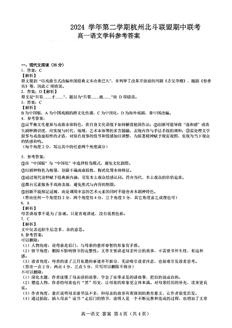杭州北斗联盟2024-2025学年高一下4月期中联考数学试题及答案 时间:2025-05-17 浙江 高中语文 浙江省杭州市北斗联盟2024-2025学年高一下学期4月期中联考数学考试已于近日开考,为方便考生考后及时查看考试情况,查漏补缺、弥补不足,本文整理了试题答案解析相关信息! 数学试题及答案解析