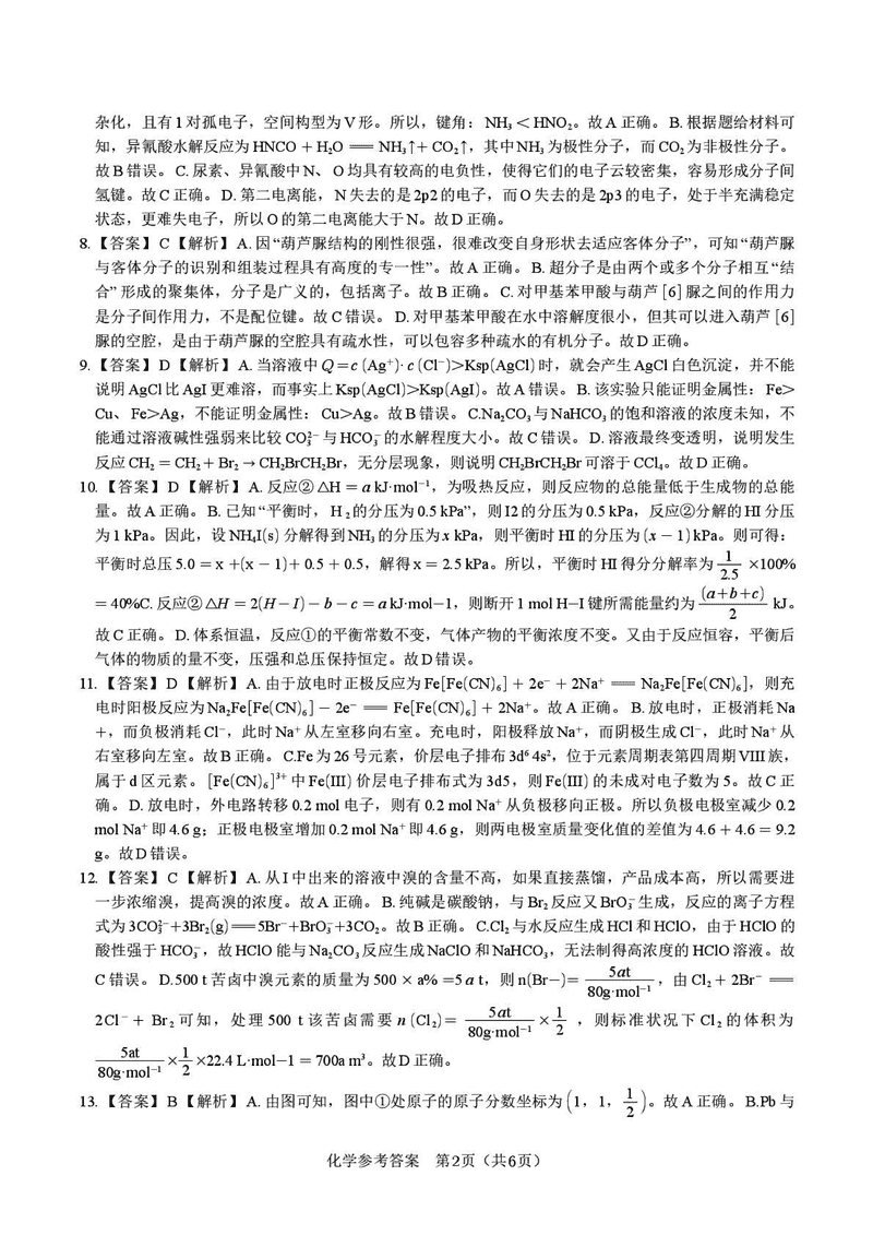 皖江名校联盟2025届高三最后一卷化学试题及答案 时间:2025-05-17 安徽 理综试题 皖江名校联盟2025届高三最后一卷化学考试已于近日开考,为方便考生考后及时查看考试情况,查漏补缺、弥补不足,本文整理了试题答案解析相关信息! 汇总:皖江名校联盟2025届高三最后一卷试题及答案汇总 化学试题及答案解析