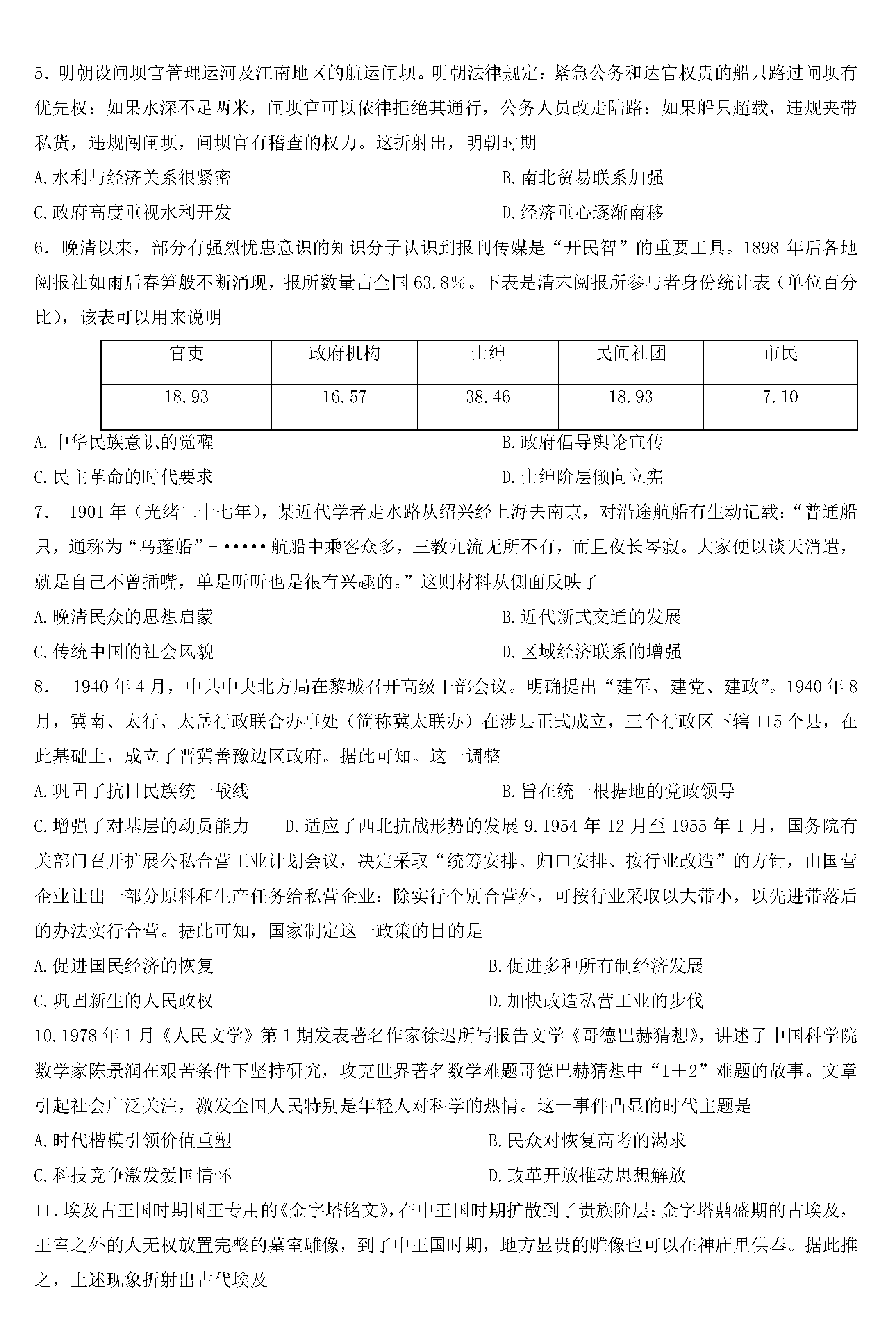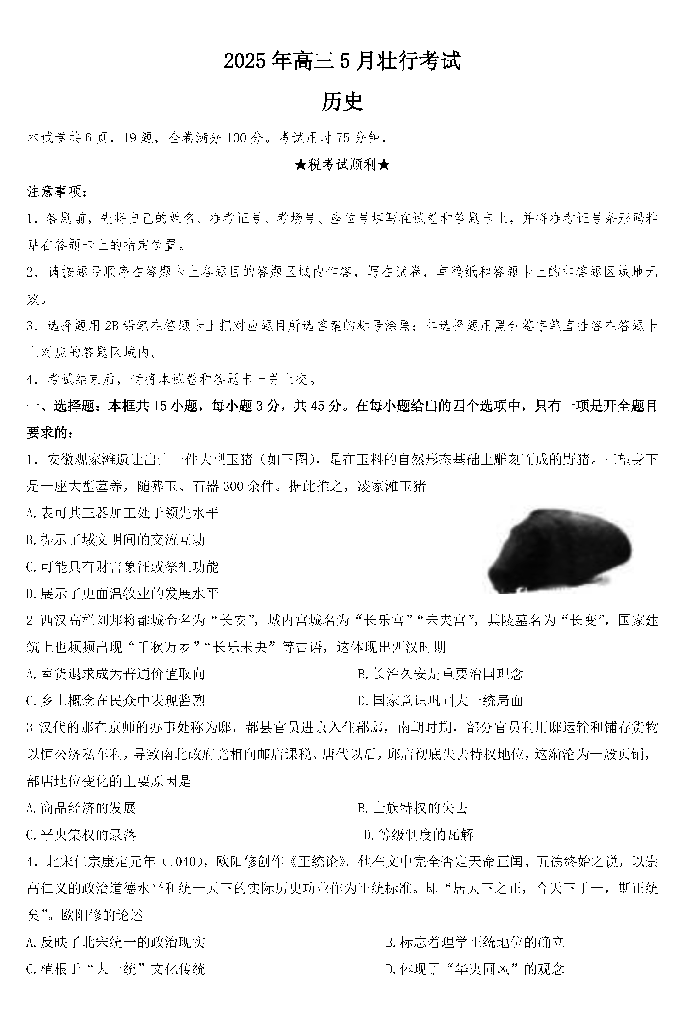 湖北新八校协作体2025年高三5月壮行历史试题及答案