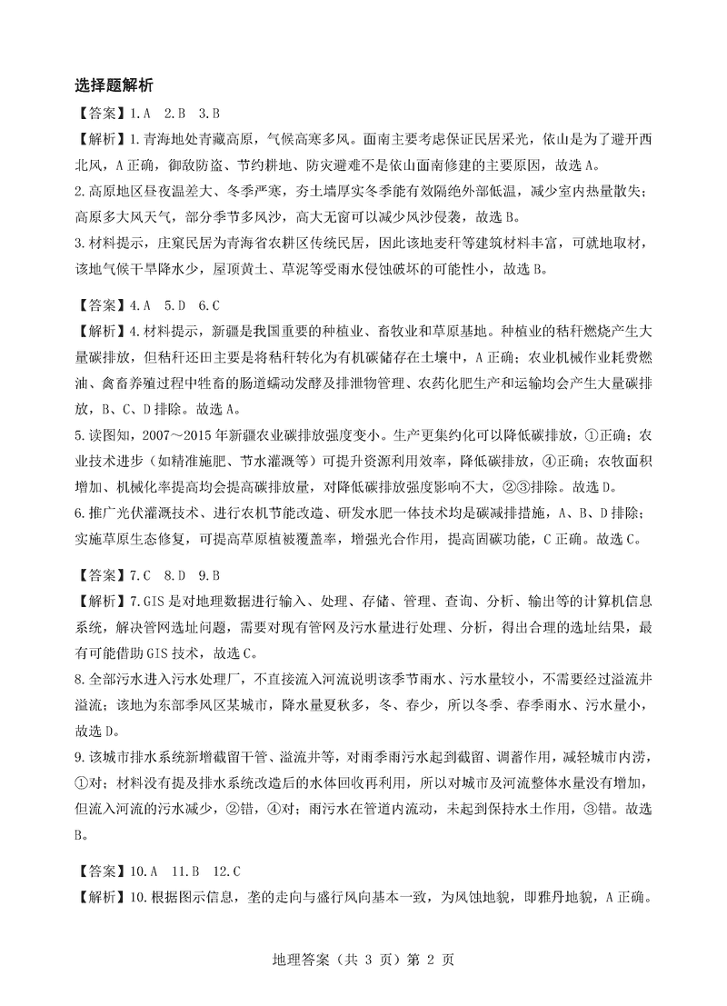 地理试题及答案解析
